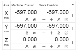 After homing, this is what I get. Would like for either position to read 0,0. I understand that I can do a G92 X0 Y0, but I tend to forget and when I start a job, well, you could imagine.