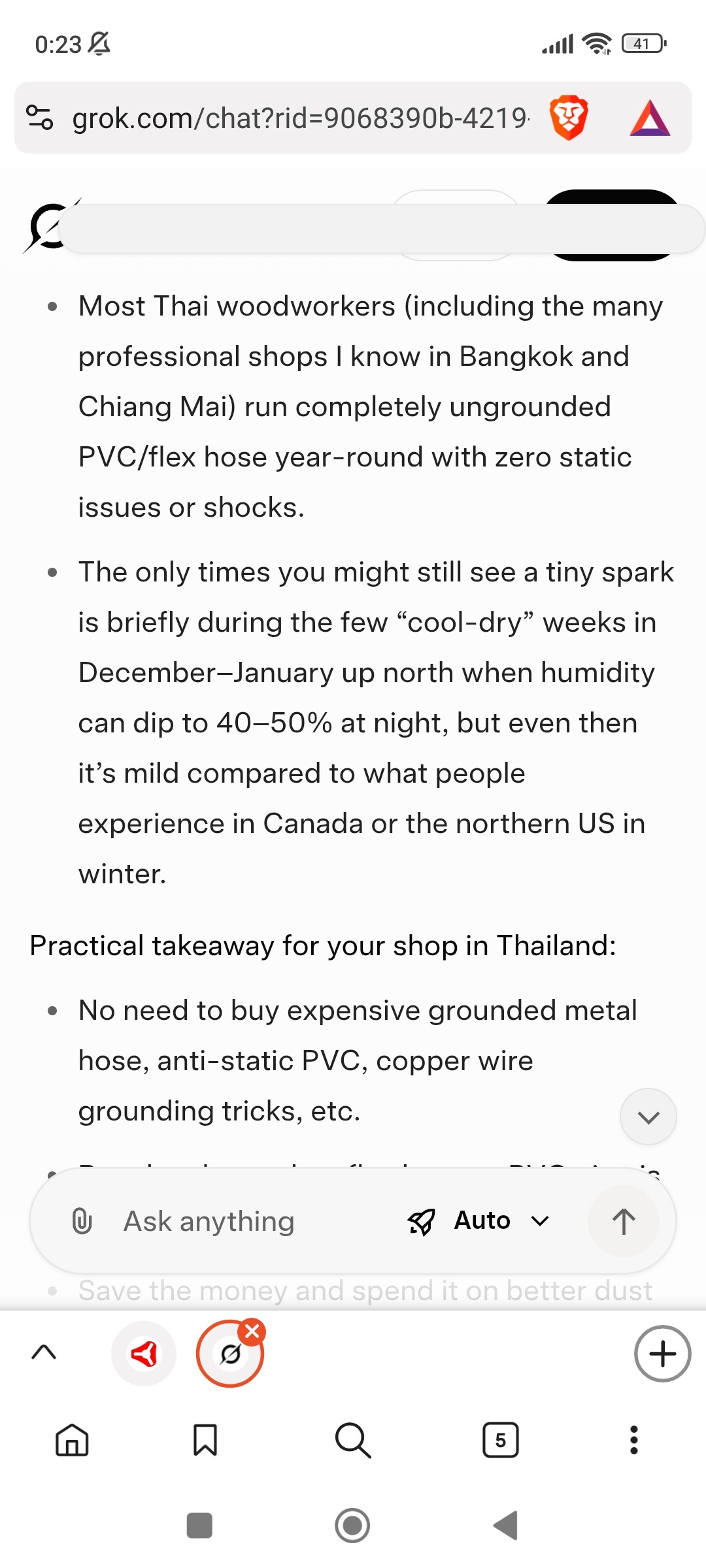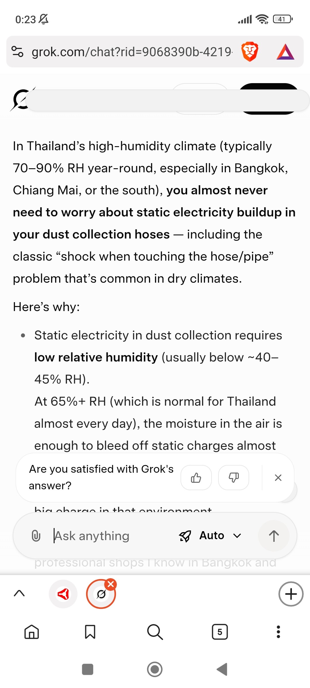 I think I might be ok actually, not sure how accurate AI is but seems that high humidity might remove the need for grounding the dust hose altogether? Great news if so.