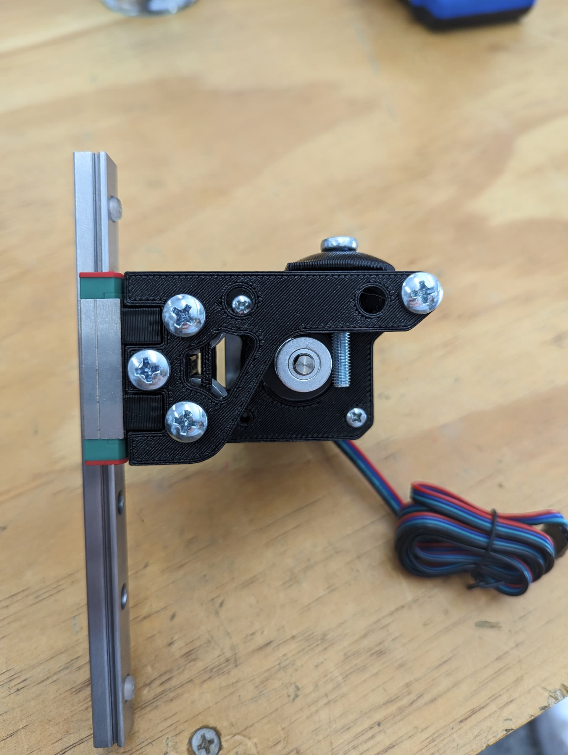 Did you mock your X carriage up on that V wheel block to make sure there isn’t interference with the triangle shaped parts protruding +Y/-Y outside of the MGN block footprint? That would interfere with the extruder mount and its assembly.