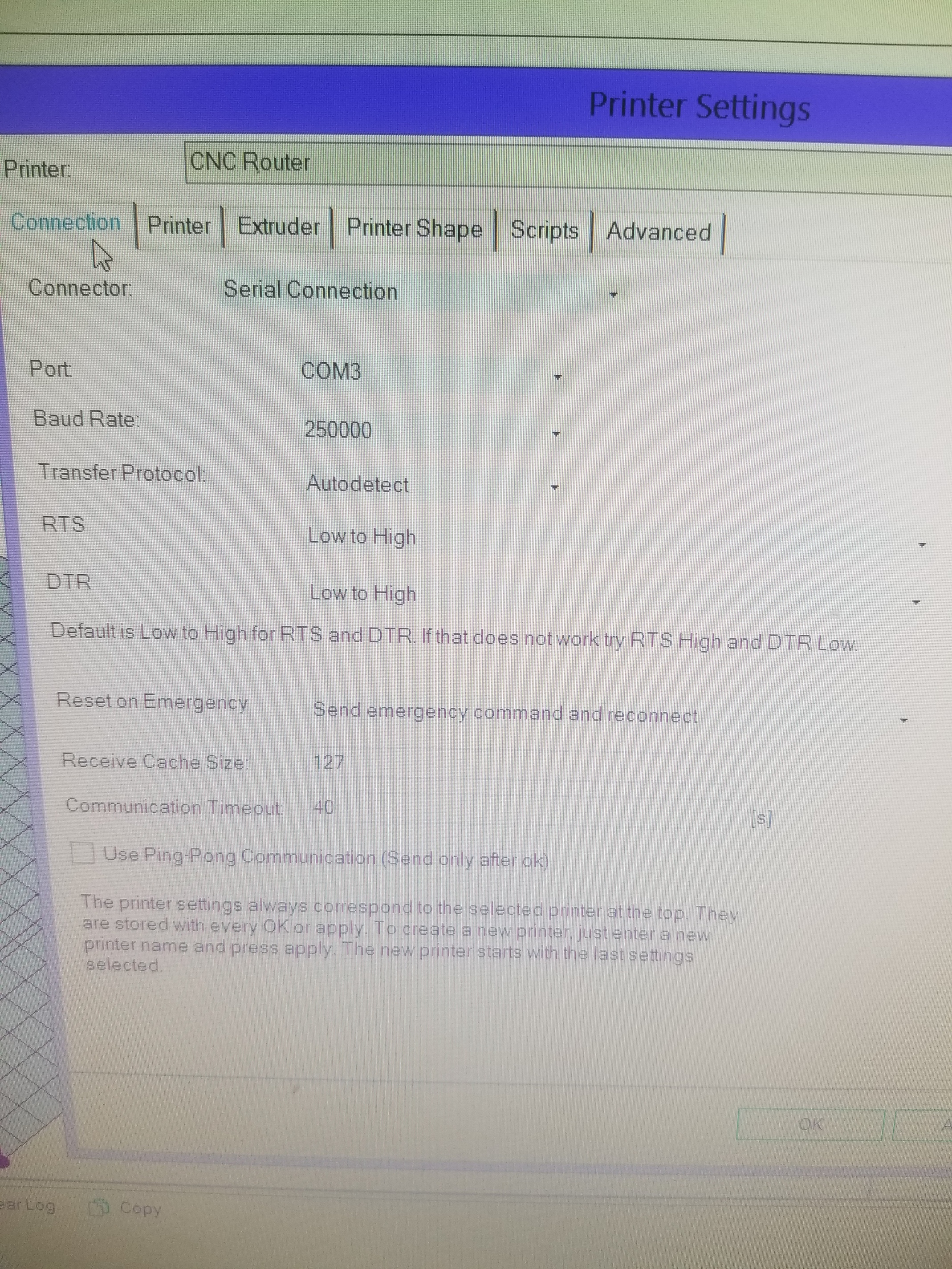 All update are up to date. I have try different cables. Are the setting for baud 250000?