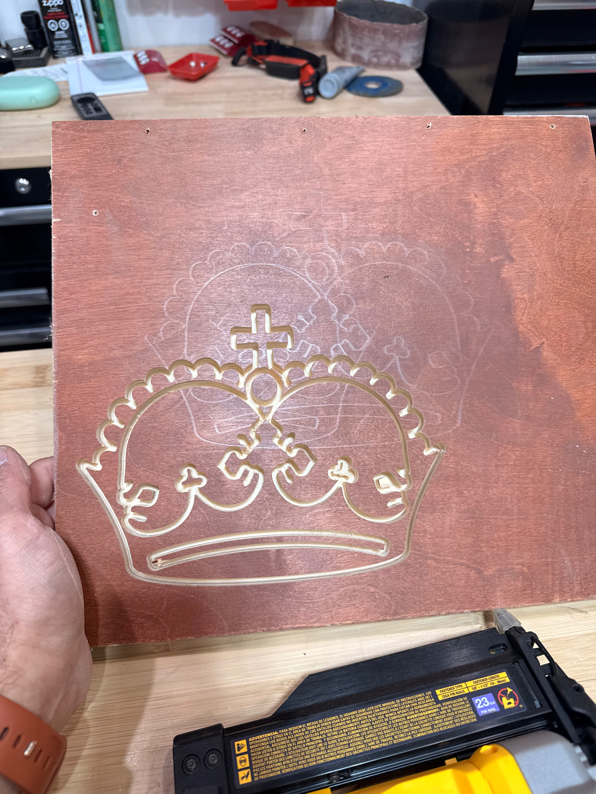 I finally built the machine and ran the crown test file (although I didn’t pay close attention to the cutting depth since I was excited to just see the machine do something, lol).