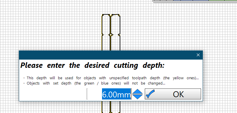 Set “Desired Cut Depth” to the ACTUAL caliper measured thickness of your workpiece stock material plus extra 1mm to help account for uneven table and/or gantry leveling.