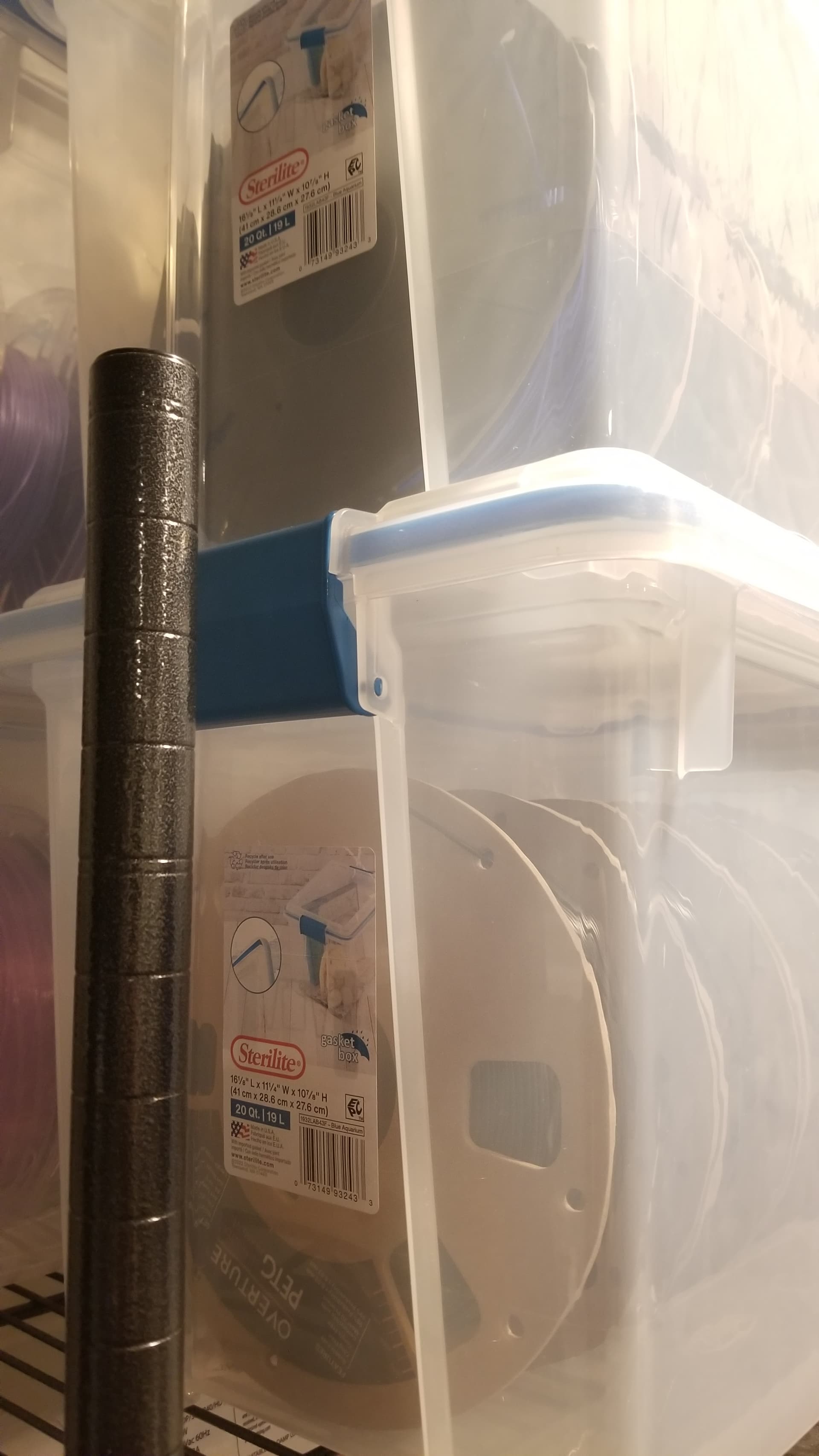 Nice! Personally like the gasket boxes too, picked up from Walmart online for $7. Can fit 4 and a bit spools. I leave “Rechargeable” desiccant in containers with hydro sensitive filaments. They’re not vapor proof, so still useful to have a spool dehydrator.