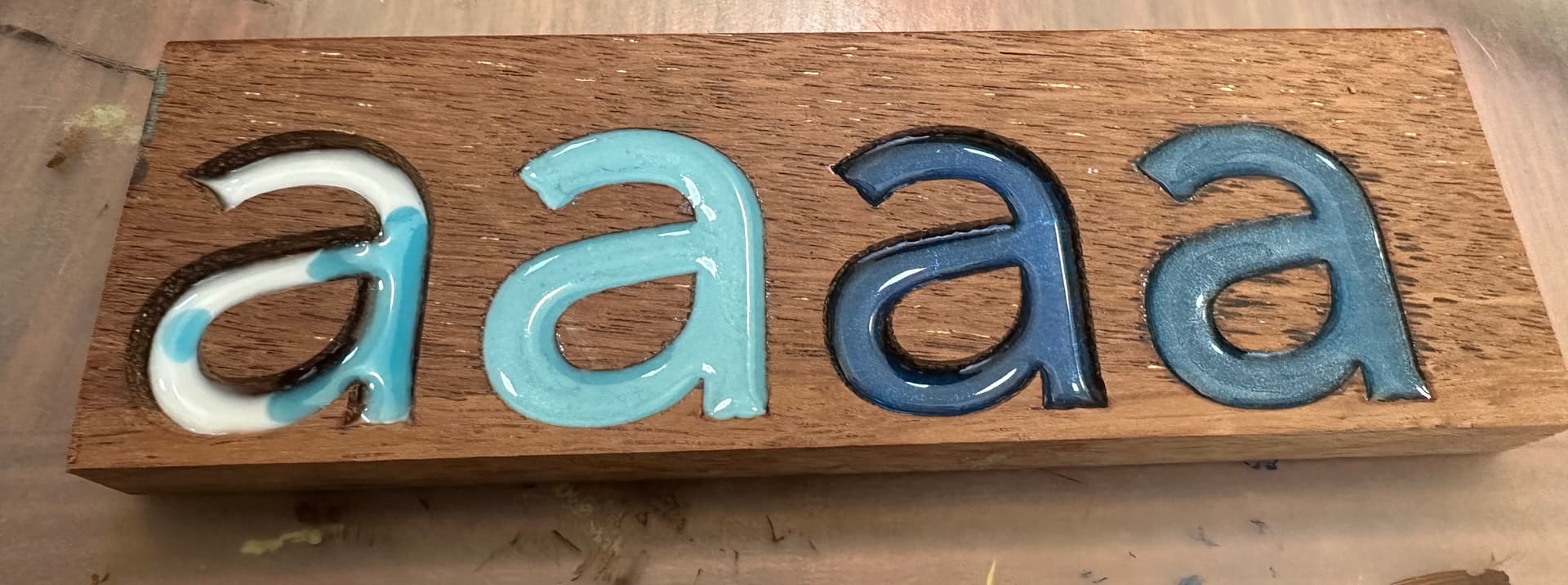 Interesting approach to resin. I always overfill it and make the carves a mm deeper (starting level -1mm) so I can just plane down the top layer. Eliminates the need for bubble hunting and makes one completely even surface in the end. Also, you don’t have to pour that precisely. I do like your method as well though.
