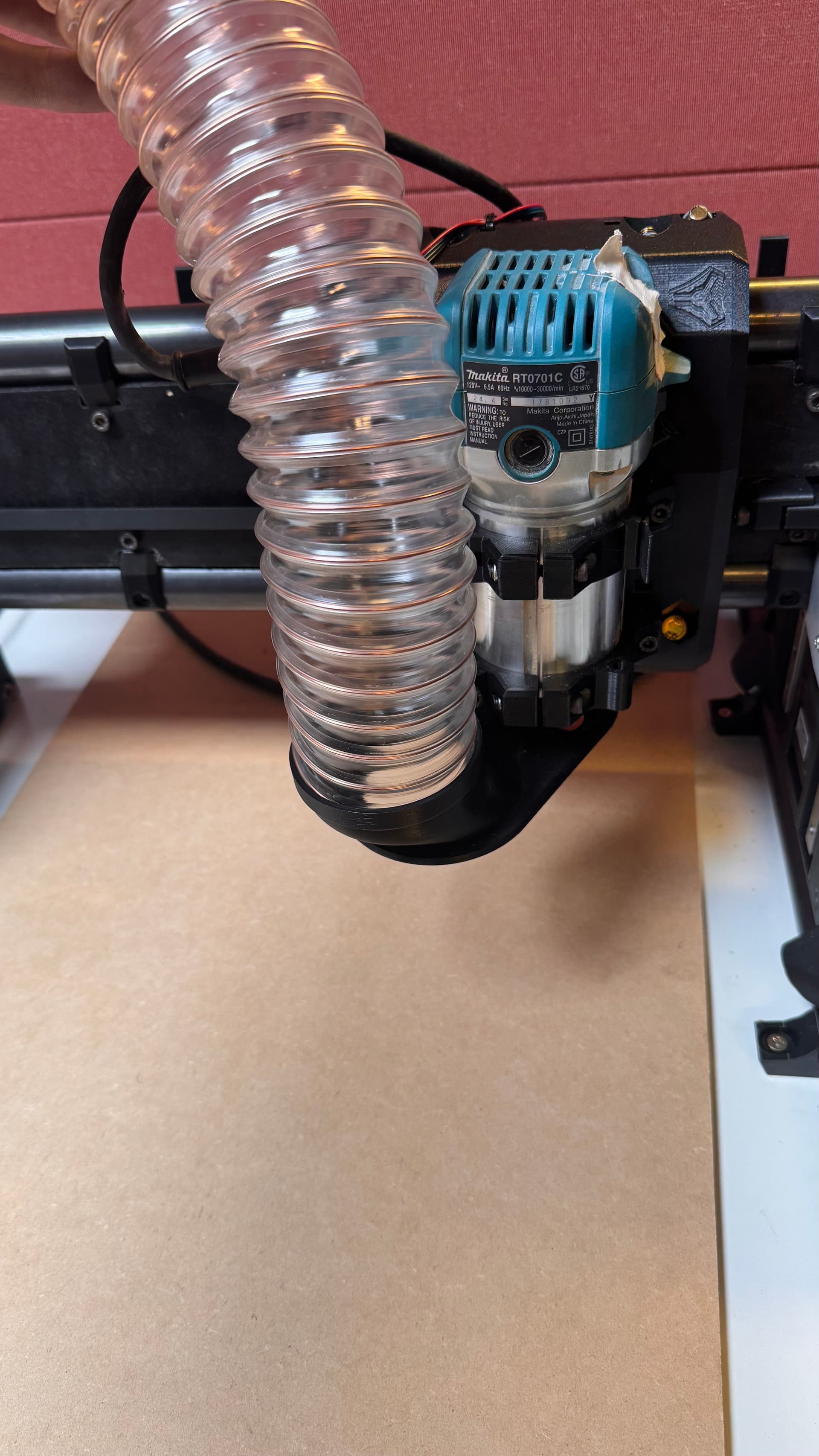 There is a hole on the upper mount for the router to secure dust hose with a zip tie and it works well for me. As mentioned above also secure it with a zip tie to the top of the core. Build looks great.