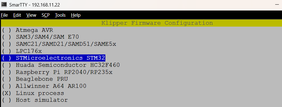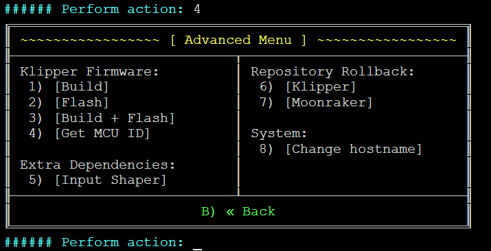 the last thing you need to do in kiauh is make your board firmware. it is an advanced option selected with #4.