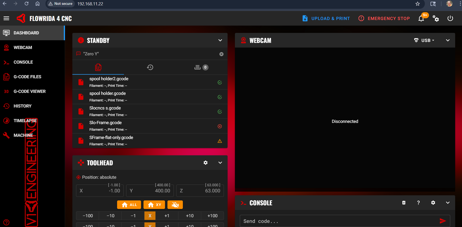 This is my cnc web page. The camera stopped working for some reason, but the device still works.