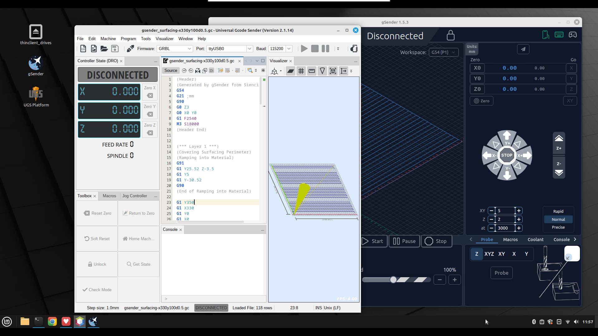 The miniPC’s with their huge RAM and SSD storage, relative to a Pi, are nice in that I can load up any/all of the gcode senders and applications I might want to play with on every machine… and then simply use whatever is appropriate and suits my mood at the time. And setting them up with Xrdp allows me to run an entire LDME desktop and application(s) on every machine from my recliner… with “room left over” for a little bit of Spider or Mahjongg.