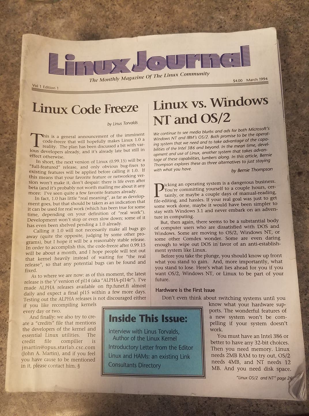 I actually just found a stack of Linux journals from issue 1 through the first 2.5 years as I finish cleaning out my old house: