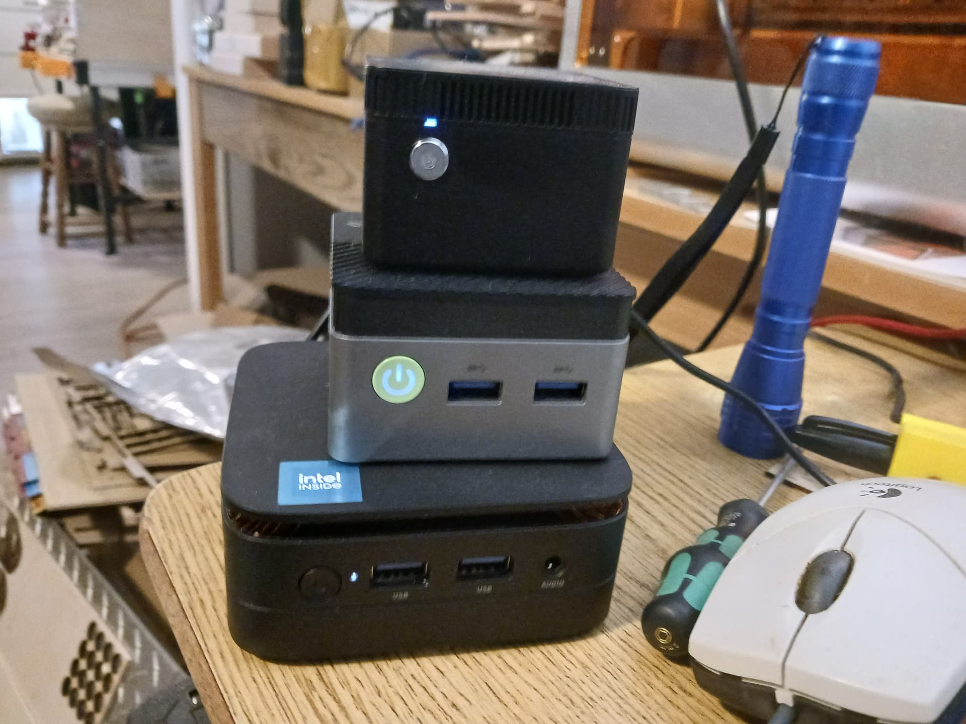 Interesting. Yeah, these are so tiny there’s only so many connectors you can realistically put on them. If you cable up everything on it, you either need to clamp it to the table or provide some strain relief. Thankfully, the way I’m using them – headless – I have only the power and one USB cable connected.