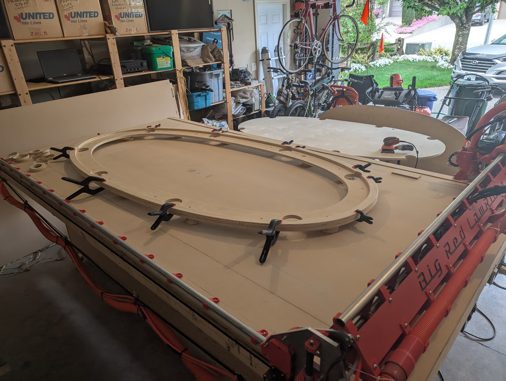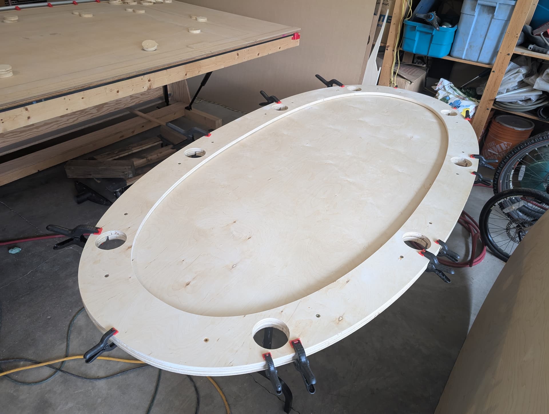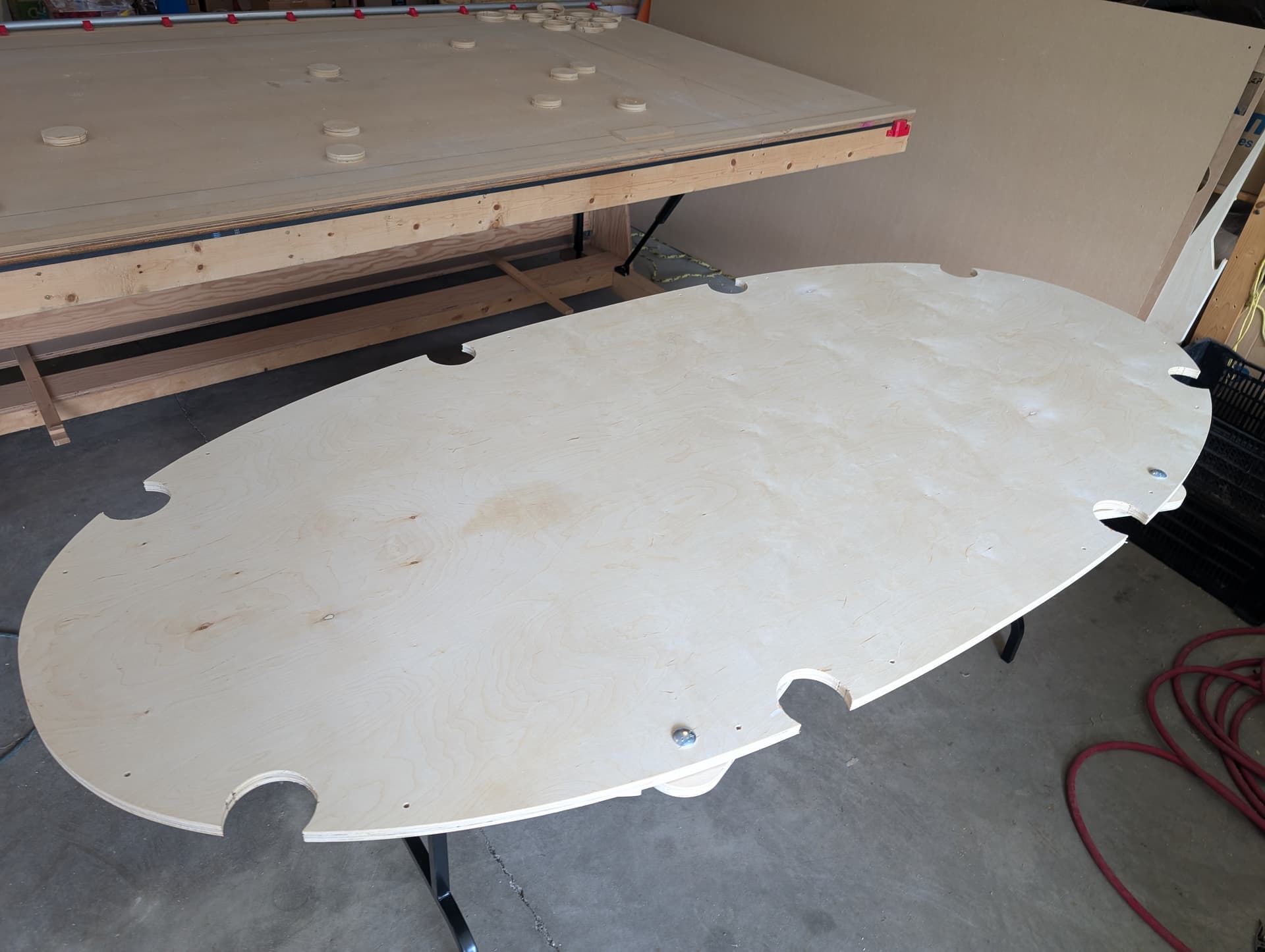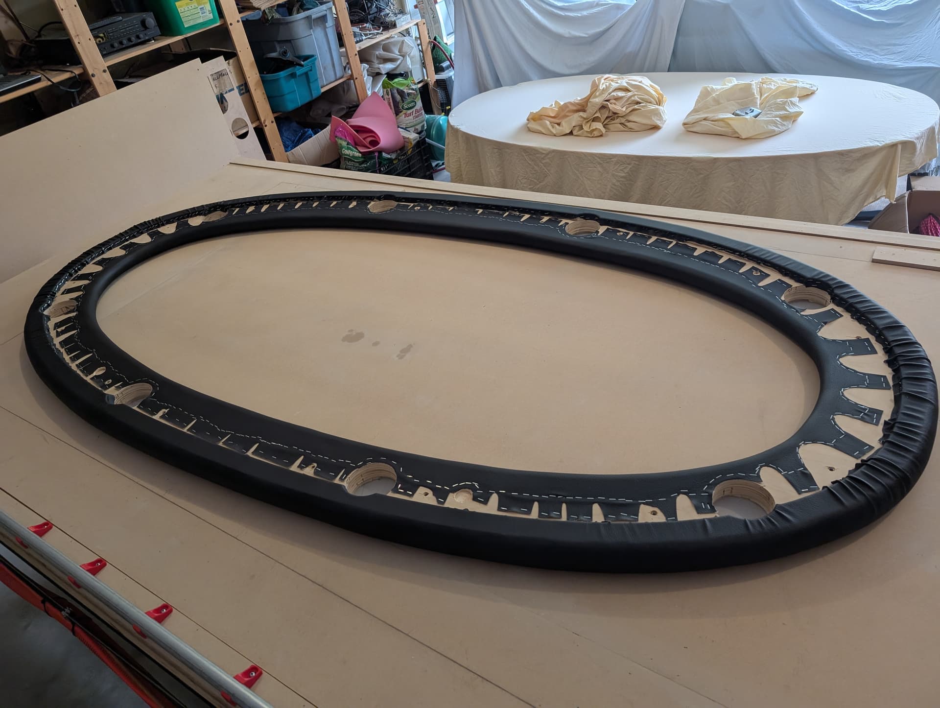 Still waiting for the cloth (felt) design to be completed and printed, but the inaugural build of my super-ellipse poker table is almost complete.