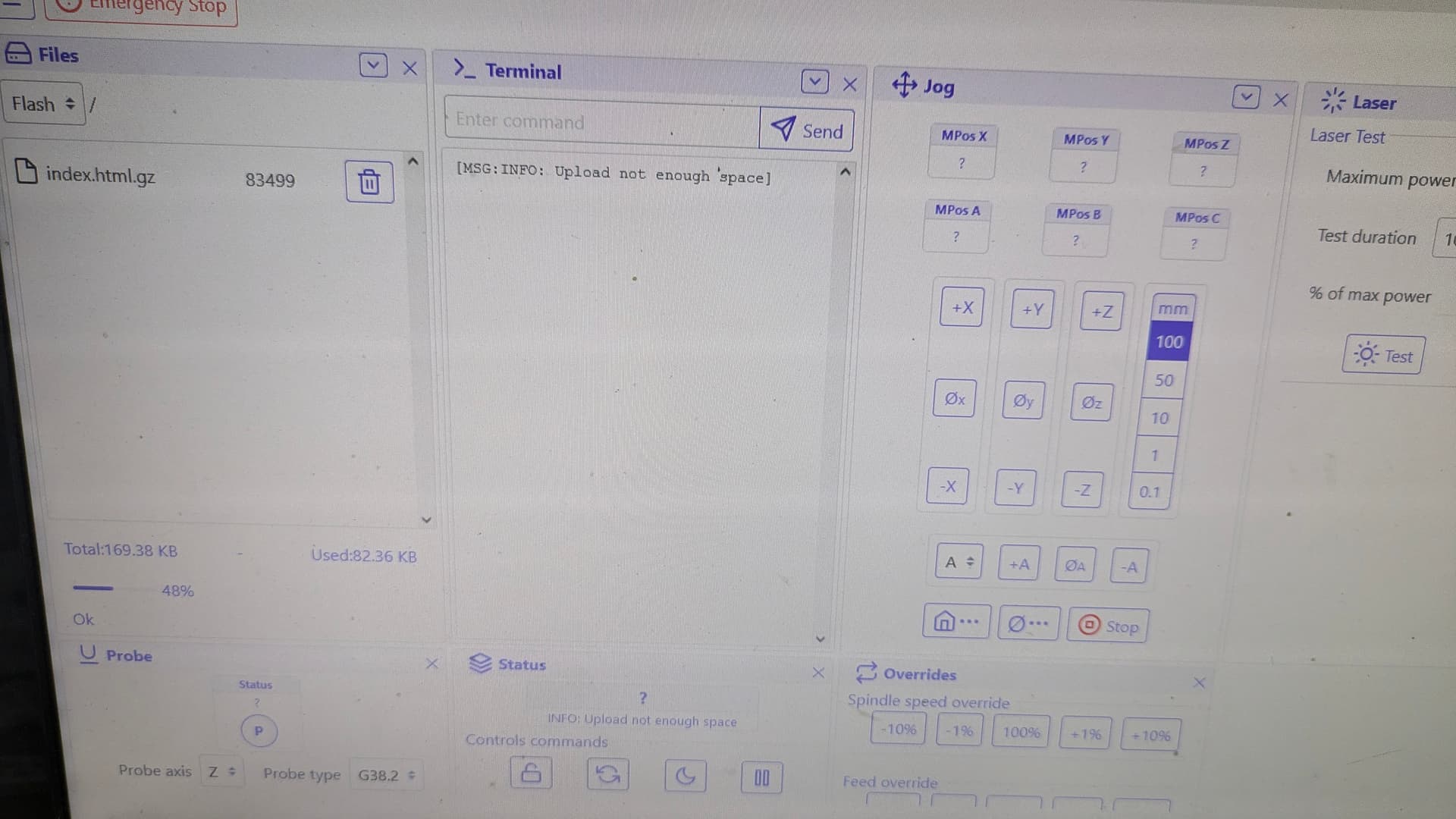 Jason, have you had the settings page crash the Jackpot? I ask because you said you use VS Code to install FluidNC to take advantage of the 8MB on Ryan’s ESP. I do too and I haven’t had Fluid crash. I don’t go clicking all over the webpage either.