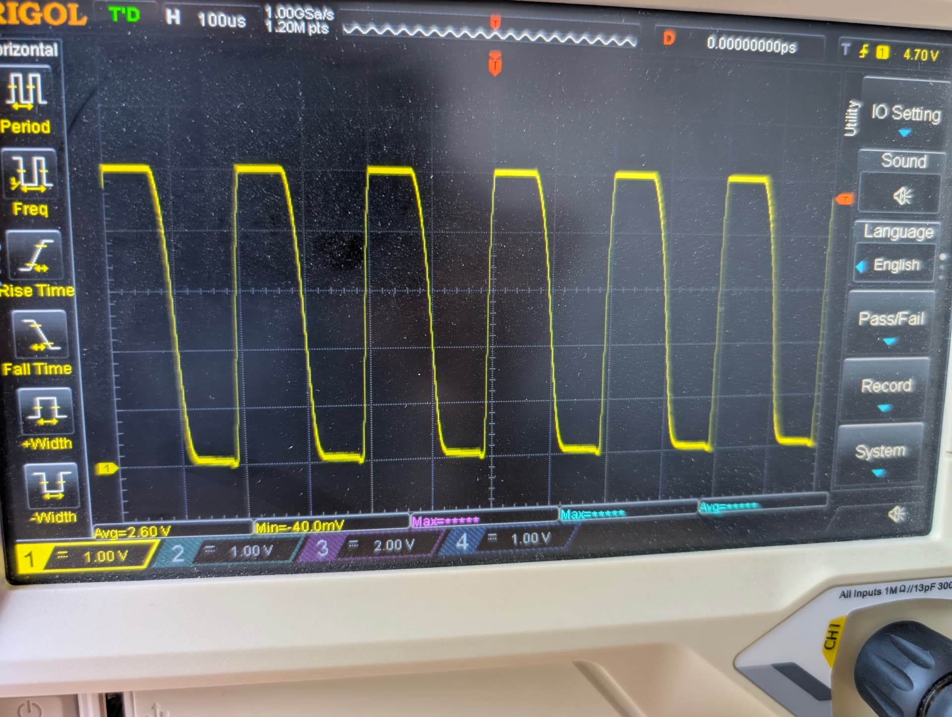 In an ideal world the corner of those square waves in the picture above are 1000 steps apart, 1000 means they touch, 500 means they are off half the time and on half the time. 50 would mean at 5v for just a little blip 1/20th of the width.