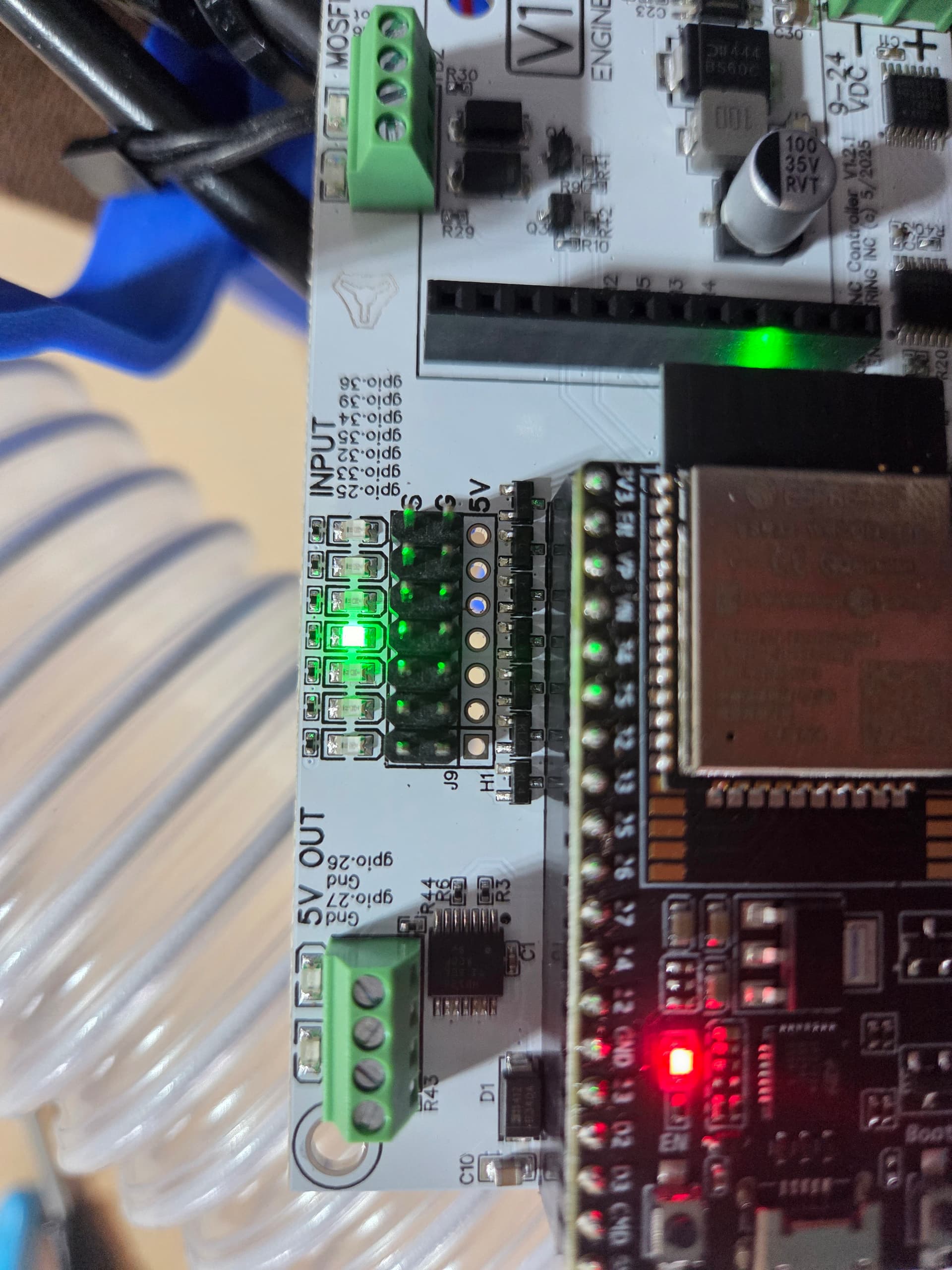 - If removing esp32 module causes light to turn off, then, what happens if you power down, insert different esp32 module, power up?