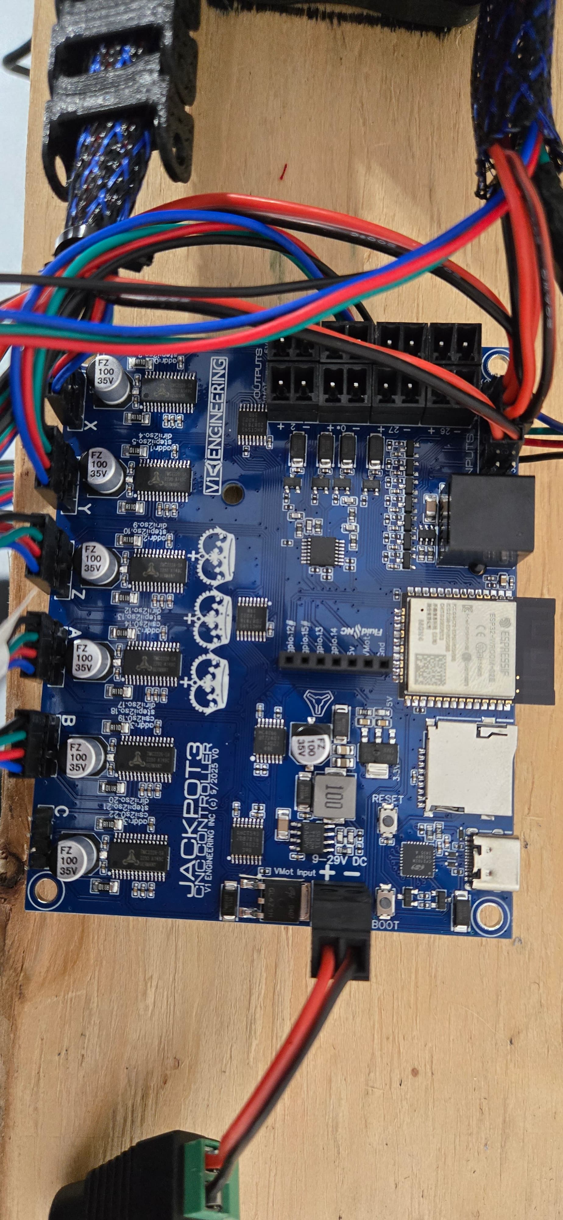 Here are photos of how it was set up when the issue occurred. I tried to follow the wiring instructions carefully, but I wasn’t able to get terminals A and B to work with any of the combinations I tried. That is, I was only able to see one x motor and one y motor working before the board went out