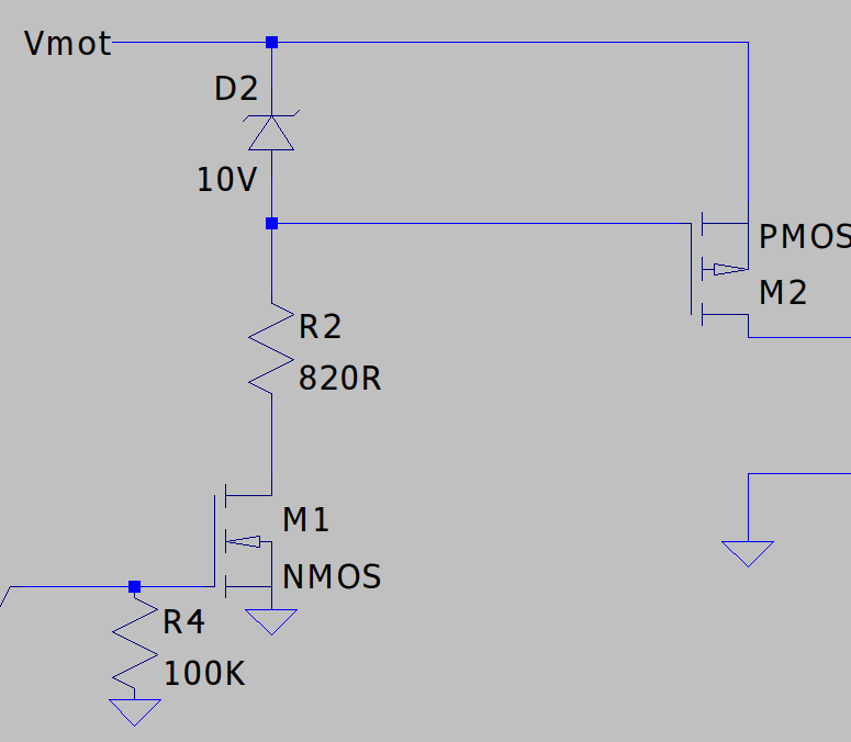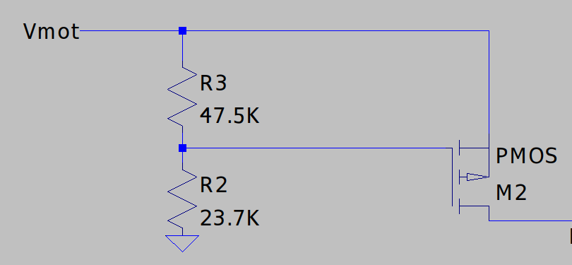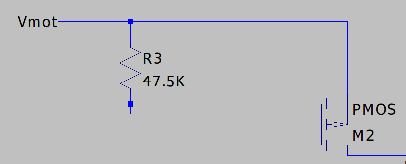 Considering the circuit being driven from Vmot = 29V, that gives us 2 options. M1 being on gives us a voltage divider between 29V and 0V. M1 being off is just a straight connection of the gate to 29V.
