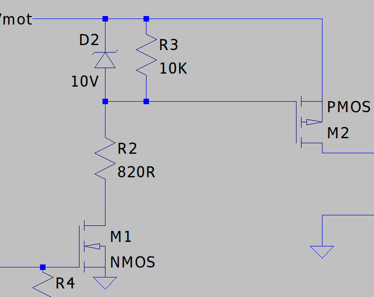 If you’re worried about the gate voltage being too low at 5V and too high at high Vmot, there are a couple of options mentioned above.