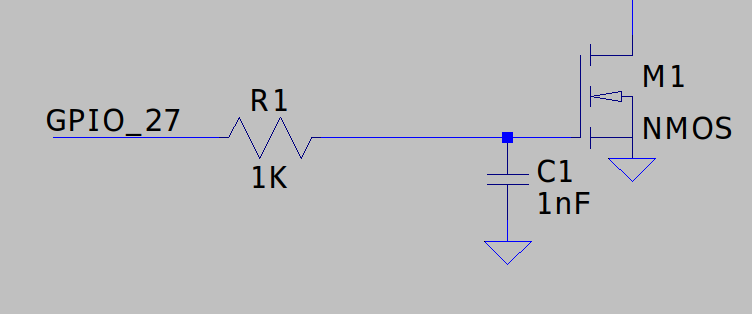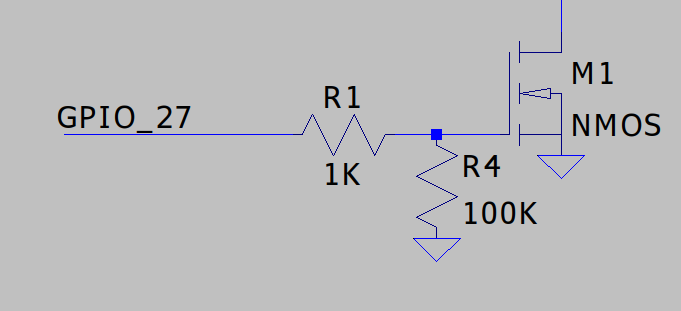 GPIO High-Z/Open-circuit: With the open circuit case we never want to have a FET’s gate open circuit because that’s an undefined condition and something as simple as someone switching on a router nearby could provide enough EMI to make it turn on/off rapidly, etc. So we use a pull-up or pull-down to get it in the state that we want it. This should be mandatory for any GPIO where the micro is configuring it as an output after booting. The output WILL be open-circuit during flashing, incorrect firmware issues, firmware crashes, that kind of thing, so we need to account for it. In this circuit, 0V on the GPIO pin is ‘off’ for the output so we use a pull-down.