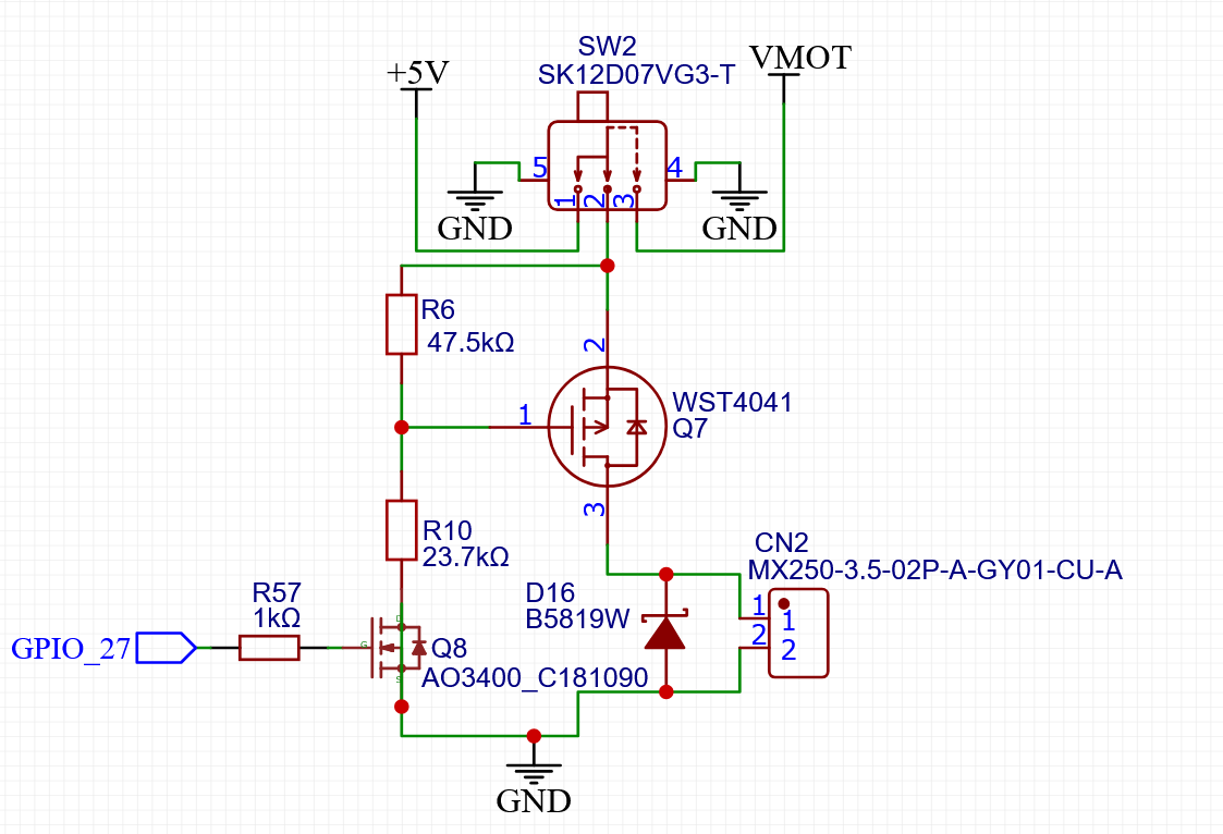 The better solution, still, for PWM is to either use different FETs or a digital buffer on a different connector, even if that’s not an ‘ideal’ option such as a pin header etc. Or have the load always at 24V, the logic always at 5V and then jumper select between the 2 circuits.