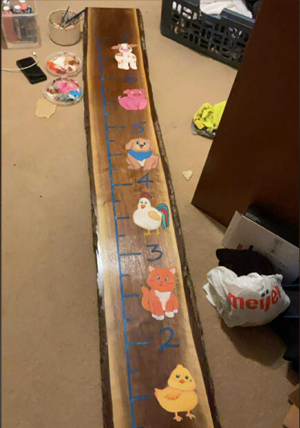 One of my favorite gifts for a loved ones after their first child is a nice, live edged height board. See the little sprouts growing on a tree. At seven ish feet long, I always get a bit nervous about wood flexing, bits skipping, or me advancing the wood incorrectly or crookedly on my 4x4’ lowrider v4. Also just lining up the straight line to match the contours of the wood is sometimes a trouble. A lot of inexperience and not really using the CNC until the last minute where its either do or die.
