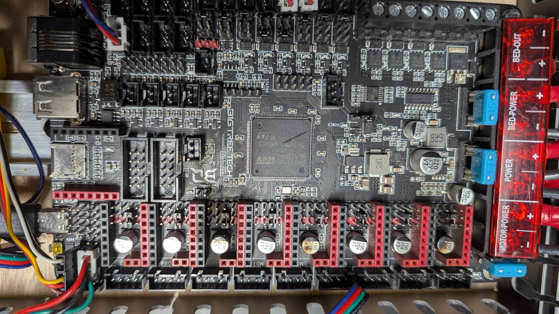 Power supply is steady at 24.22V output. I had a second 24v power supply, but it is bad. The plan was to put the motors and board on a smaller amperage supply and the bed on the larger one… Octopus is bad too it appears. That is 2 boards on this printer. The first one was totally my fault. This one ran for about 2 years and then it fried the 2209 boards… Im tempted to just buy a printer. Anybody want to buy most of the parts to a v5? 300x300x400…