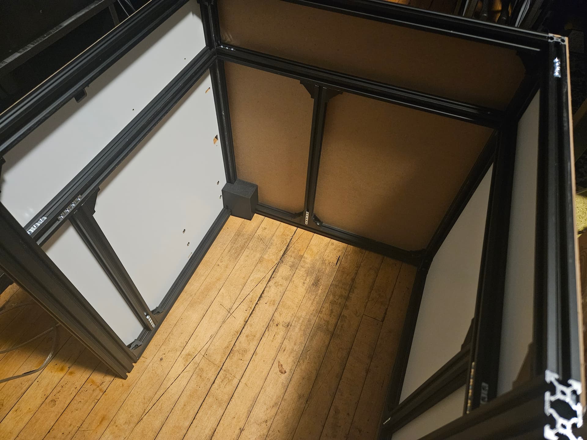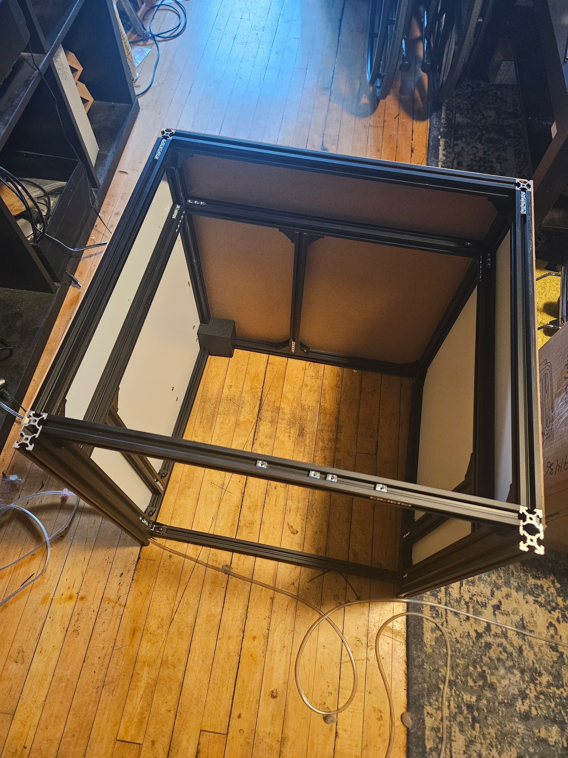 Well, I cut back and side panels, forgot that I cut 2040nextrusion for the front uprights, so yherd will be some exposed onvtye front outer corners. Oh well.