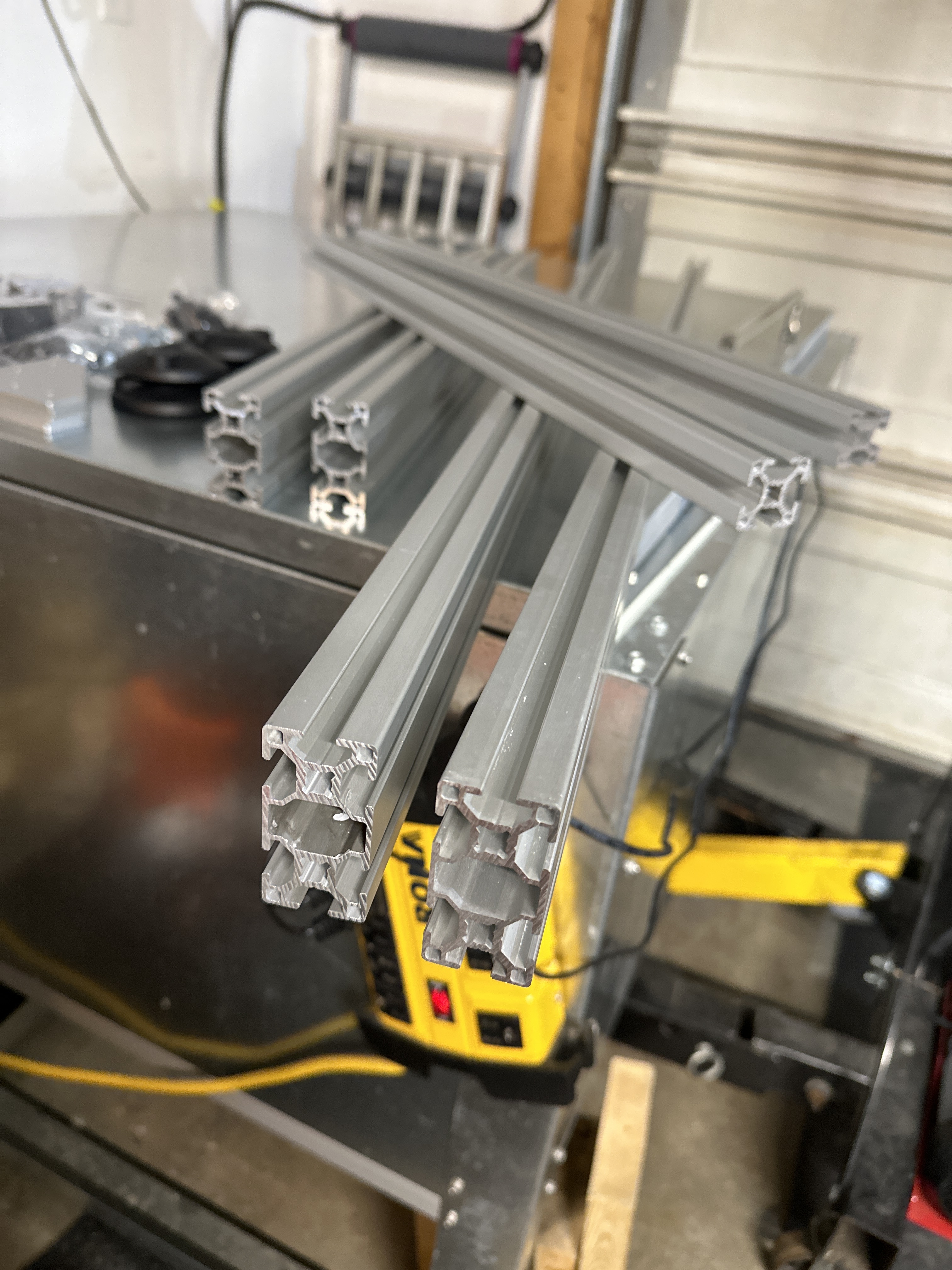 And that’s where I’m sitting. My thinking is to use extrusion (because I have some laying around and someone local has a bunch more on Marketplace at the moment). It seems to me that extrusion is lightweight, can be assembled flat and square, and SHOULD be something a guy can disassemble and reassemble reliably? Am I right so far?