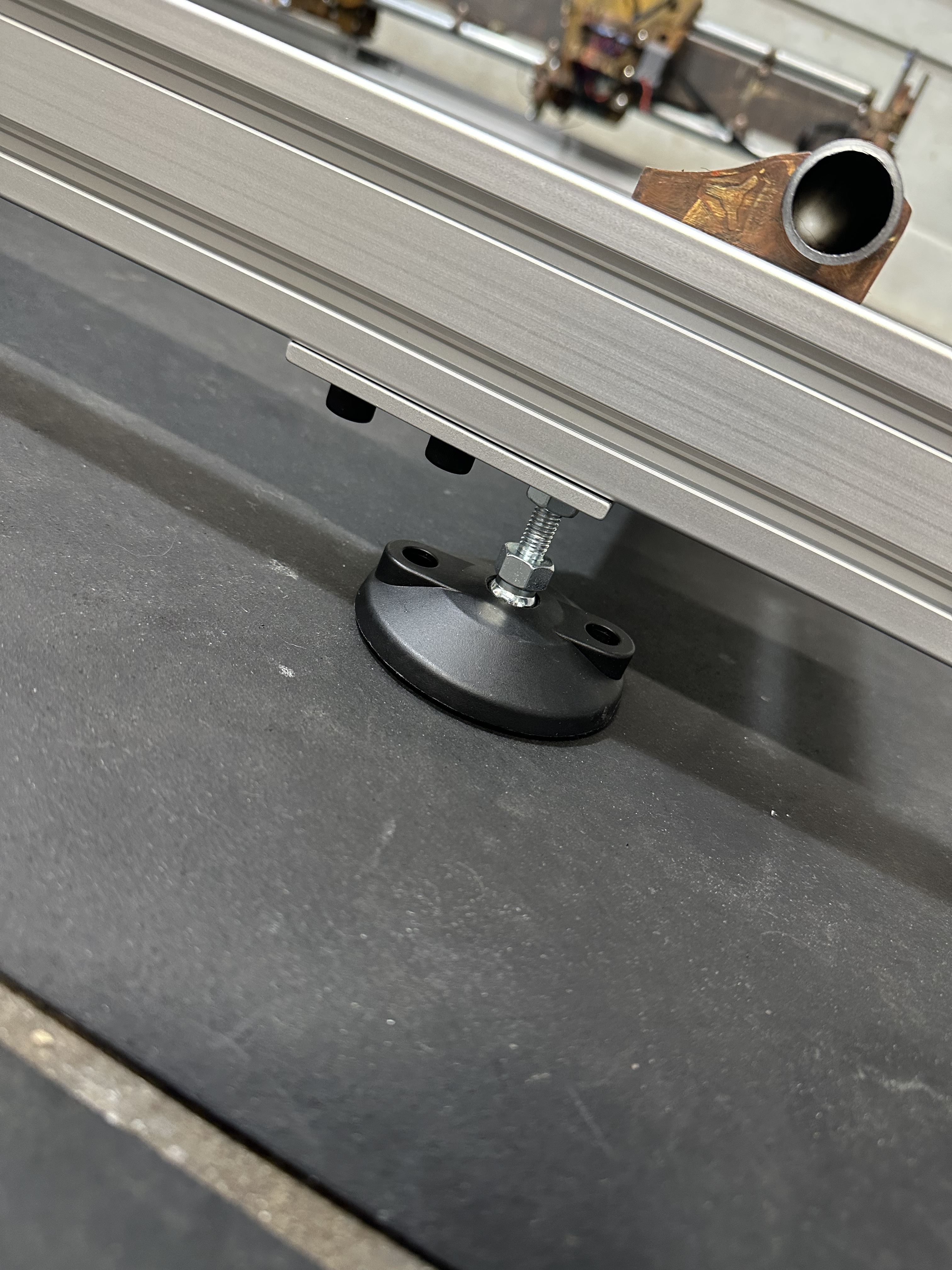 I’d then have a moveable front tie, between the fixed front tie and the rear, that can slide up and down the y-axis. You won’t be able to use blind screws as you won’t have access holes (unless you drill access holes on frequent intervals, but that may be a concern for being able to clean the machine thoroughly) so I would just use some corner brackets that you loosen the screws on the y-axis bracket flange to reposition.
