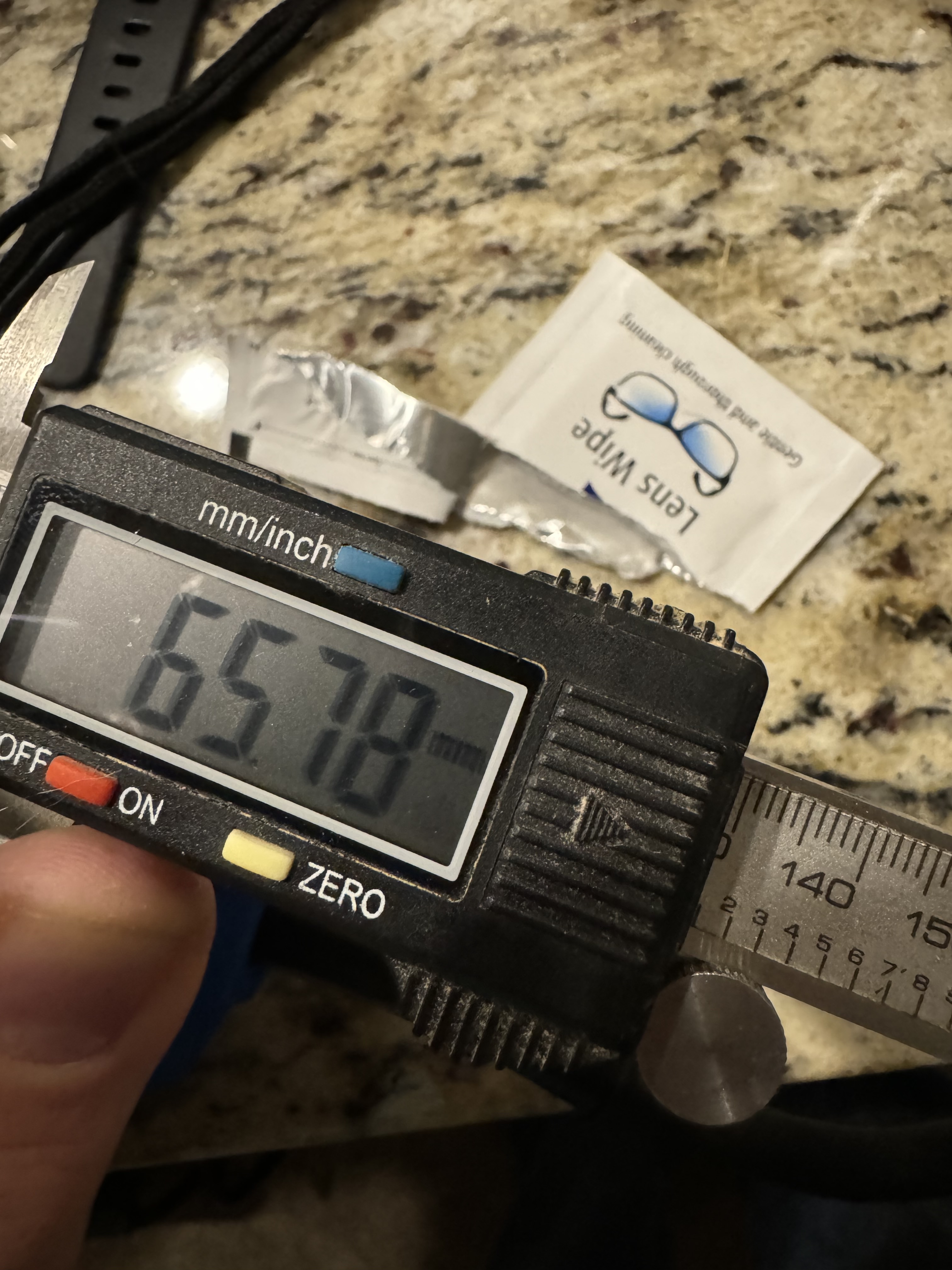 Calipers have a hard time reaching but I’ve got 65.58-65.78 depending on where I grab it. The base detached but clamped shut I’m getting 65.8 almost consistently