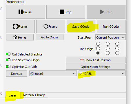 Note you do gain a few features if you directly connect your computer to Lightburn. One feature is the ability to have the laser frame the work area to make sure you have the laser positioned correctly. Personally, I run all my laser jobs off an SD card using the Save GCode feature of Lightburn.