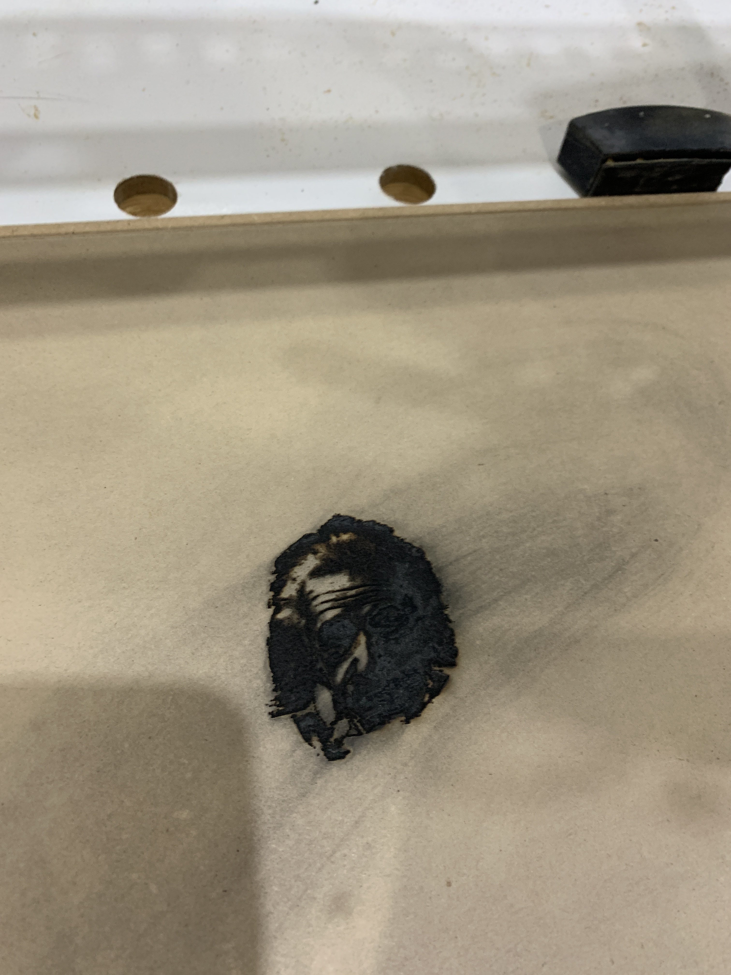 Just this evening, I’ve used a 2.5 watt Eleksmaker to test another air-assist scheme… but used the last “shades of gray” gcode file from the “Laser engraving – not really getting great results” thread (https://www.v1engineering.com/forum/topic/laser-engraving-not-really-getting-great-results/page/9/). I’m using a MKS Gen L v1.0 board which indeed seems to be very compatible with the Mega/RAMPS combos I’ve used in the past. There’s even a replica of the AUX2 pin block containing pin 44, to which the D9 fan output has been remapped for +5v TTL modulation of the laser.