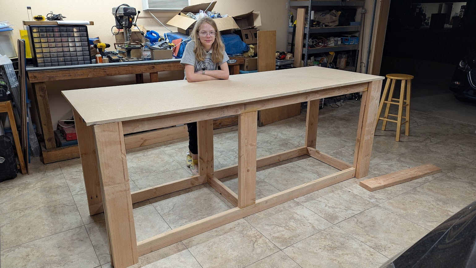 My now 15 year old daughter helped me build a new bench for the LR4 in our new shop/garage (So excited to have a garage again after 18 years without one!)