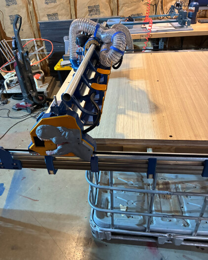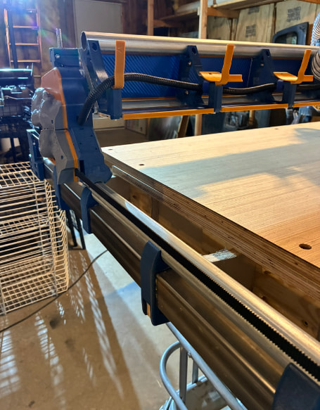 I did my ways out of some square stainless steel tubing that I sourced for free. I used the parametric table plans that Ryan and Doug had worked on and made mount system to hold the ways to the table ribs.
