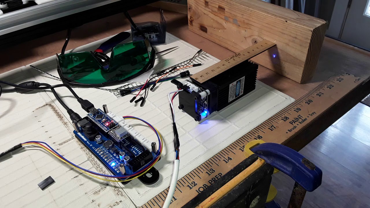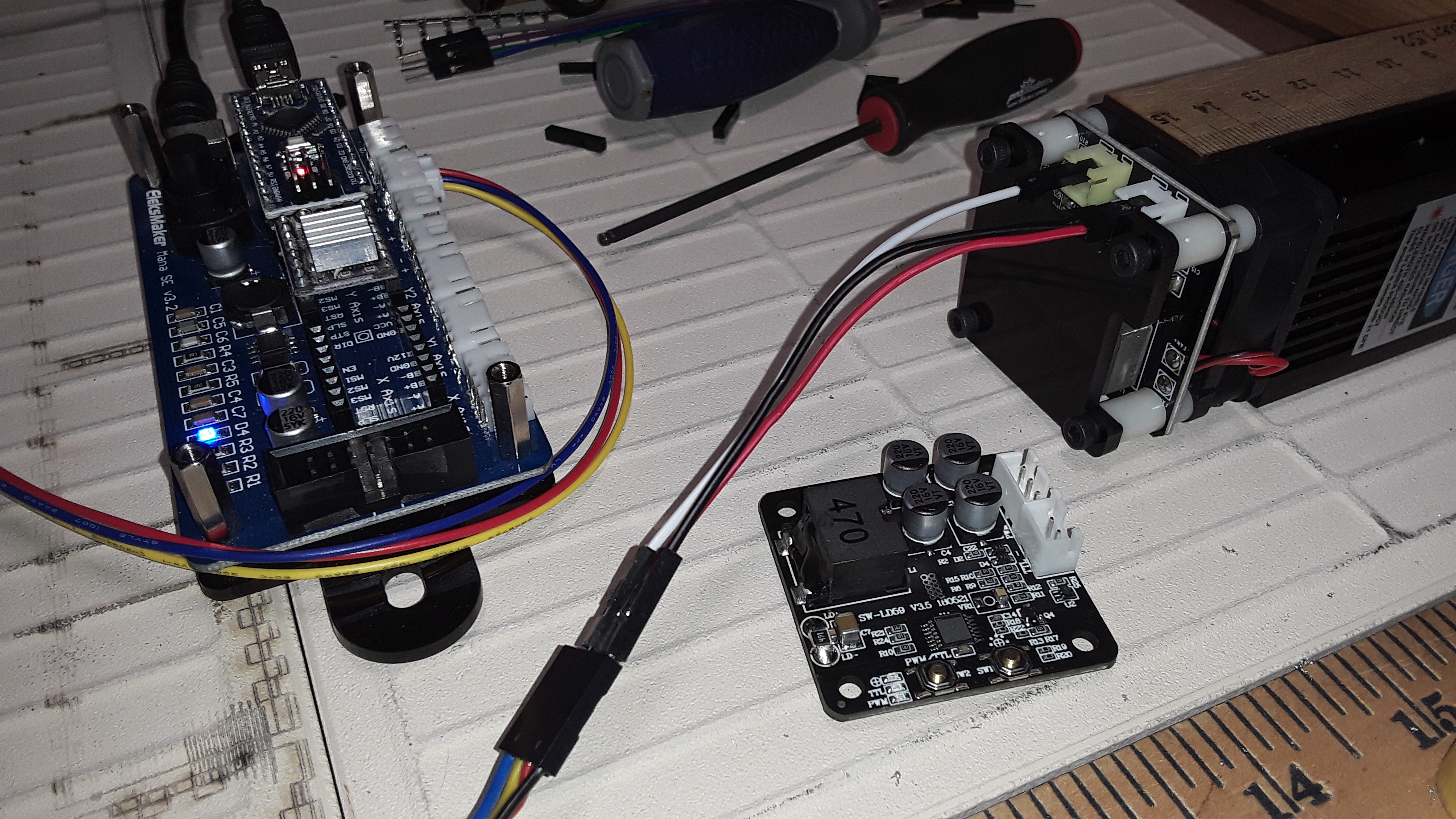 I set up the “zapped” laser module for retest… to confirm what I was seeing before setting it aside.
