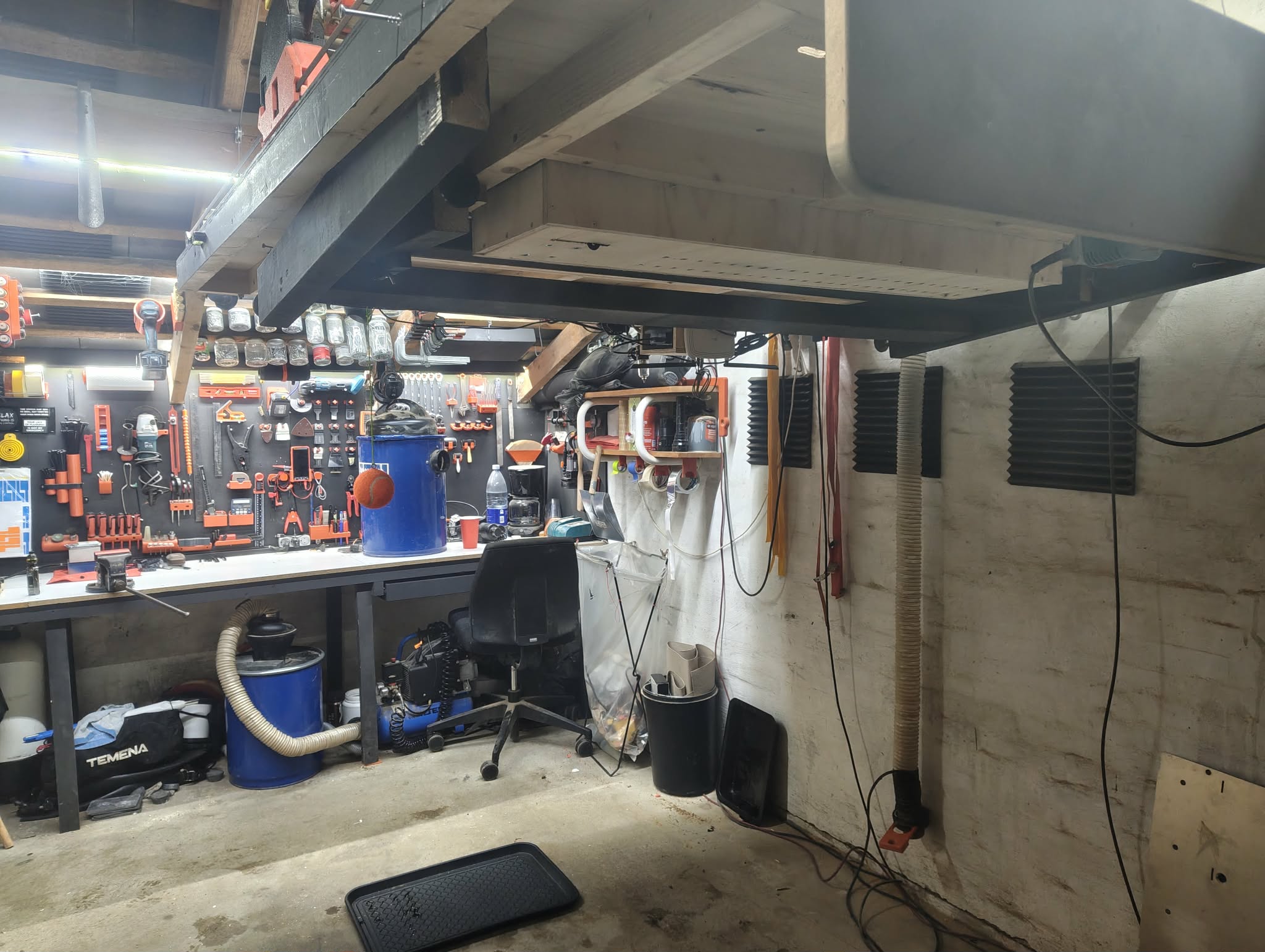 I’d like to be able to store my lowrider and table out of the way when I’m not using it. I’ve considered cable and pulleys to lift it but worry about poor design or execution and having the contraption crash to the ground. I came across a pretty affordable option from Home Depot and wonder if anyone has tried this, something similar, or designed their own lift system. https://www.homedepot.com/p/FLEXIMOUNTS-Lift-Series-Frame-48-in-W-x-48-in-D-x-15-in-79-in-H-Black-Adjustable-Height-Steel-Overhead-Garage-Storage-Rack-GL2FB-E/332766670?MERCH=REC-_-searchViewed-_-Garage%20lift-_-0-_-n/a-_-n/a-_-n/a-_-n/a-_-n/a