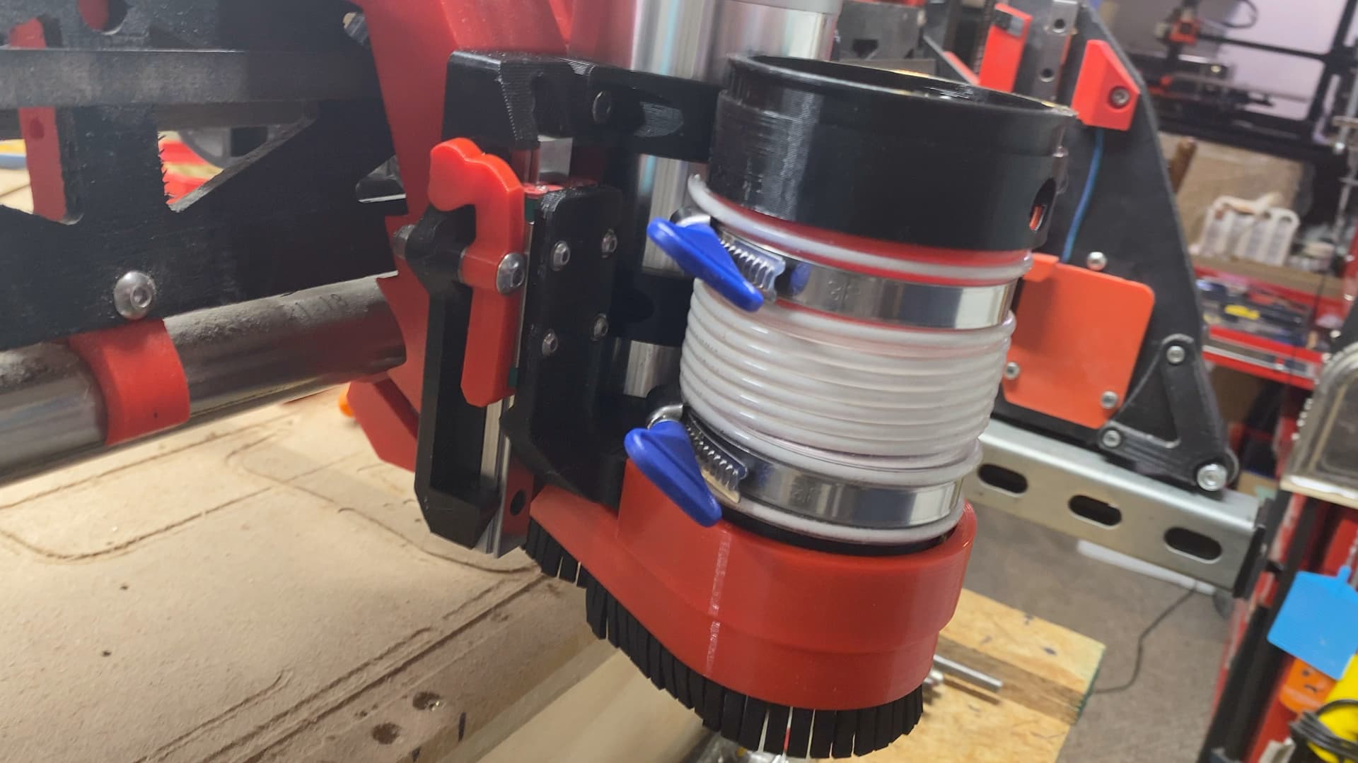 Thanks Doug. I didnât have a problem with the suction not letting it go down. I believe thatâs because I donât have that extra shorter piece of hose in there with limited room to move. I think just a little larger opening would do wonders. I did print a full open from the original listing and ran it when I did my surfacing. I would get these âstringsâ of mdf that would block the opening on the newer one but the full open had no problems. I do think the newest one is better supported with the extra Eva foam. It doesnât fall flat like the original. I might see about remixing your half open and see if I can add another rib of foam in there to help it not just flatten the foam and ride on the work piece. If I ever get time lol