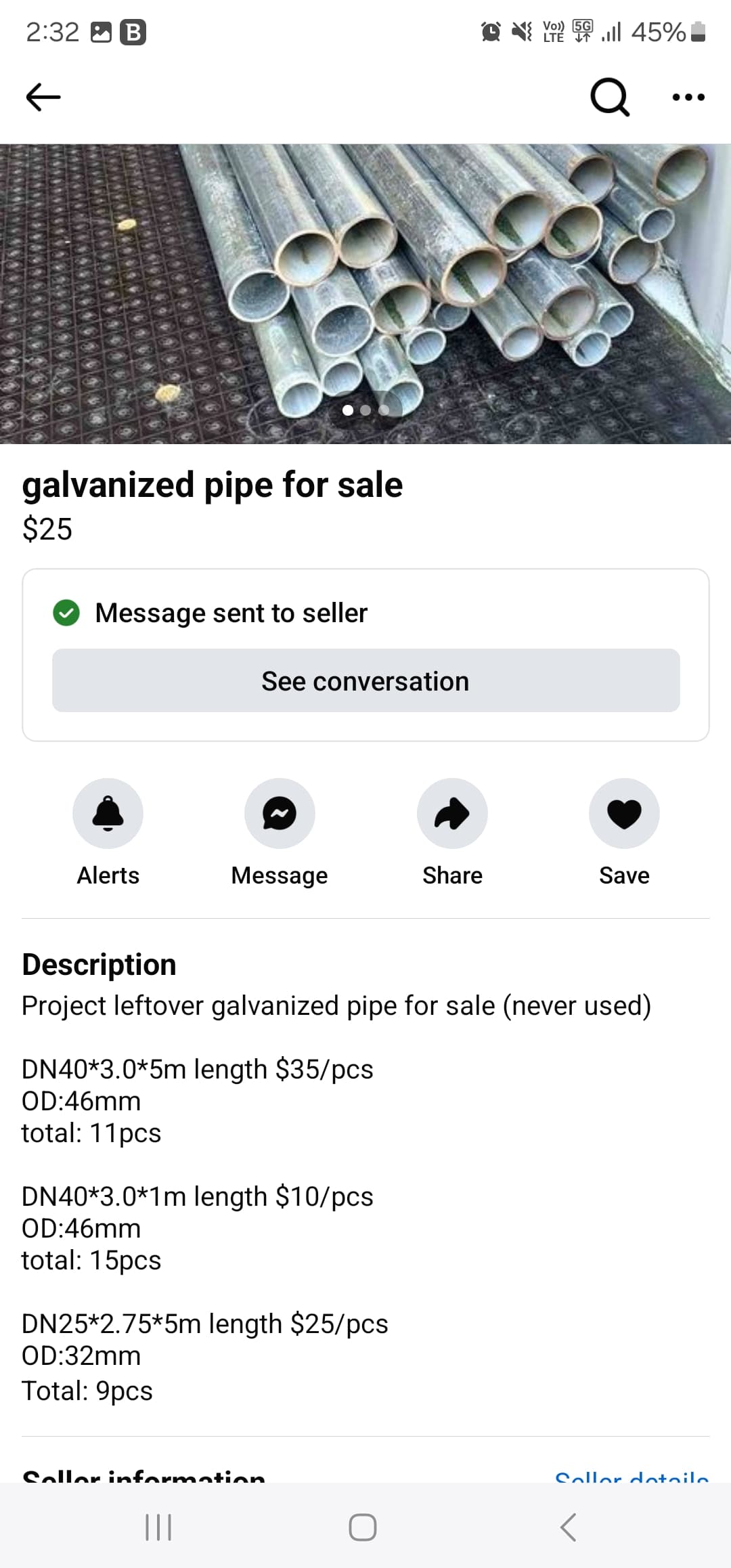 A 6m length of 304SS 31.75x1.6mm can be had from my local steel suplier (Edcon) for $64aud. they will cut to size if you ask ($3-4 per cut from memory). I haven’t got it yet but this is the path I will likely go.