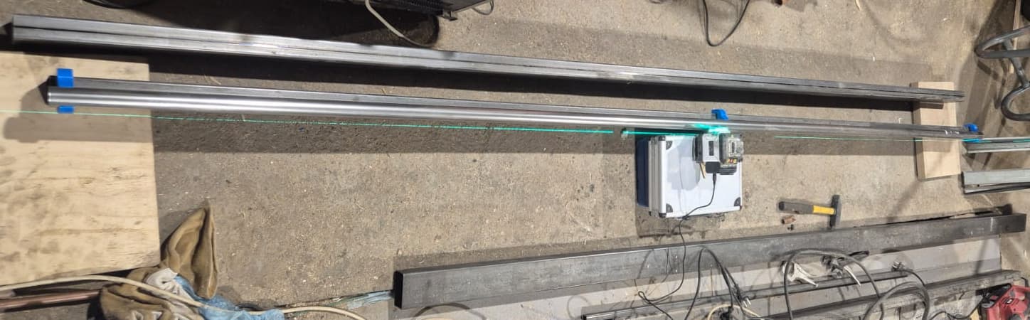 in the weekend started the table build, there is no real progress as time was limited, but managed to use a laser to understand the straightness of my pipes, most of them were a tad bent, but one was around 1mm mark over 3m section and I can live with that. It seemed surprisingly good, so I’m currently printing few parts to test Y parts I posted previously. Downside is that I can’t weld this pipe now, as it will warp, so have to figure out how to bolt it.