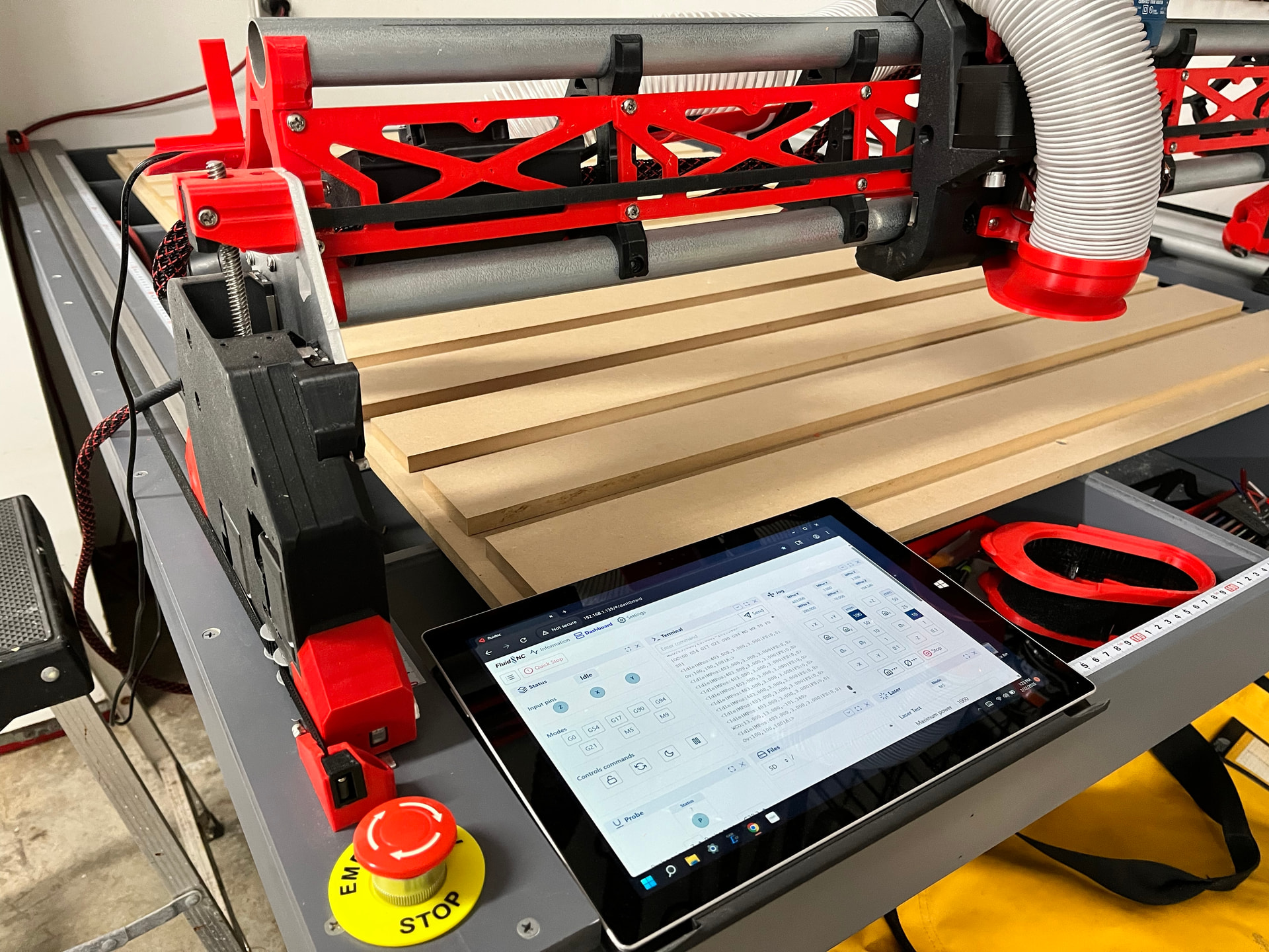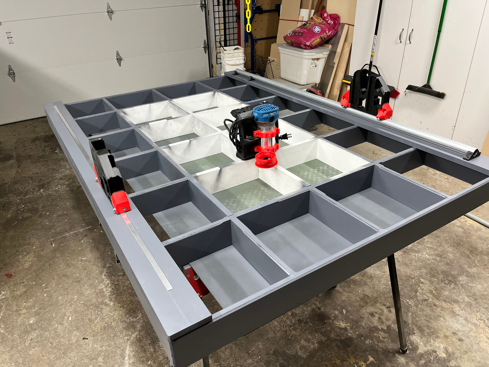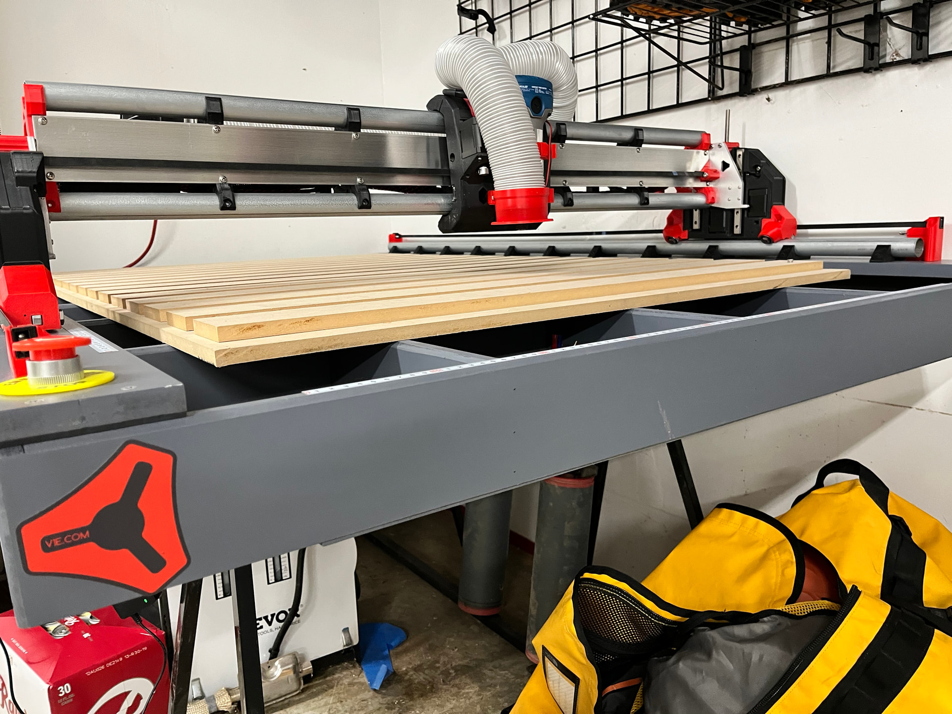 I ordered the kit and controller directly from V1E, it arrived within a week. I built a 4x6’ torsion box, giving me a 3x5’ build area. For consistency I purchased 1x4” primed molding, then used a 1/8” dado to glue up