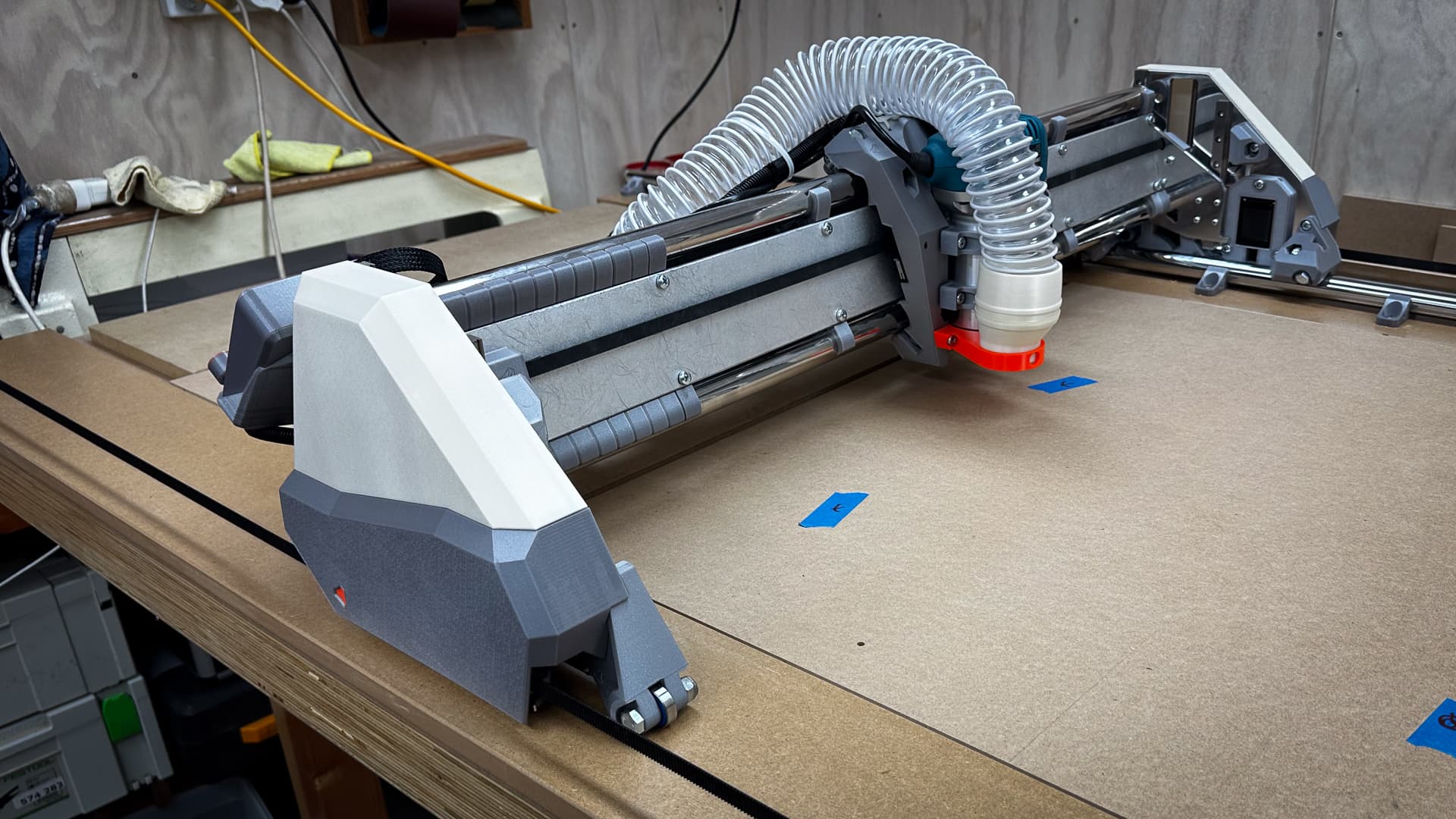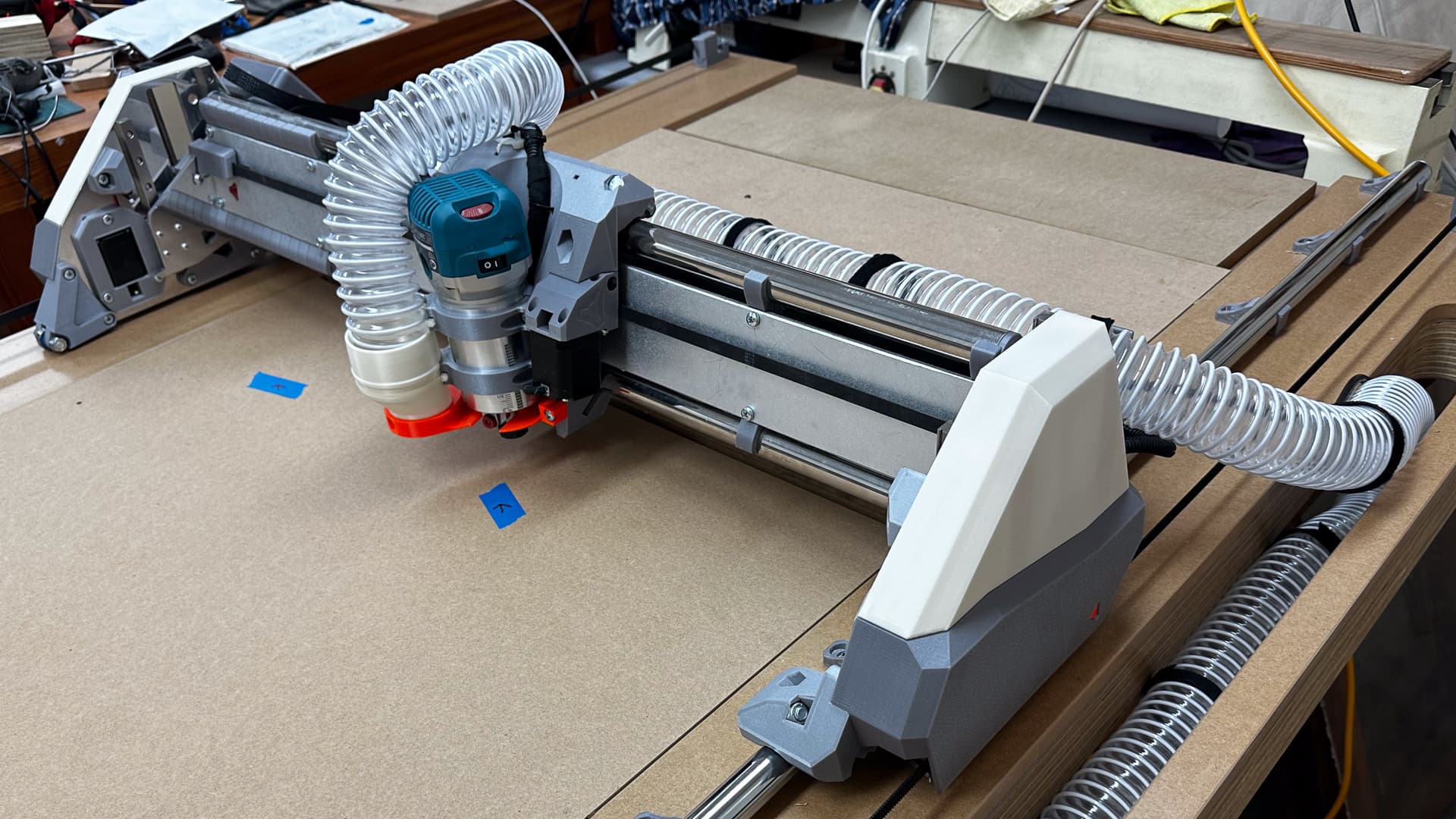 I finally had everything moving properly, homed everything, ran to the table extremities, auto homed everything and started to think about how I was going to mount that Sharpie. So I fitted all the leads and vac hoses, tidied everything up, added my fenders and thought I’d make a short video.