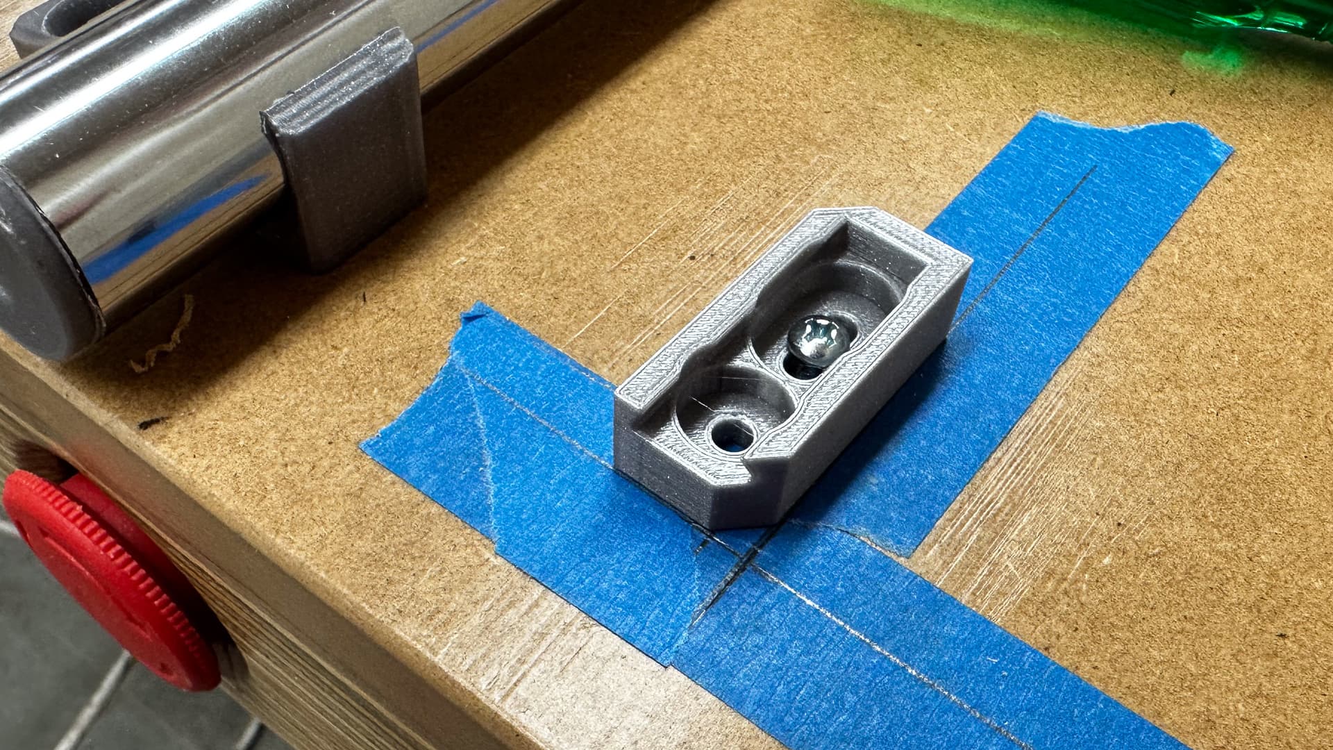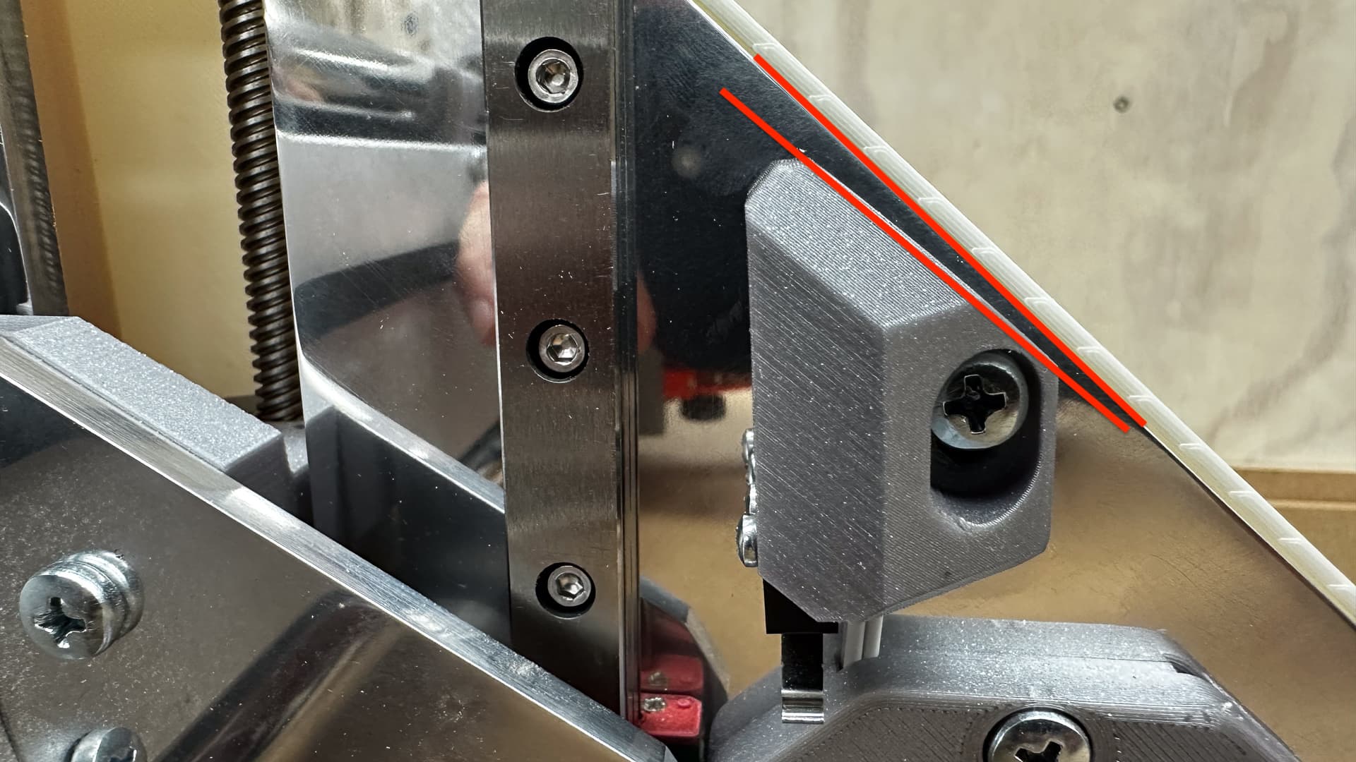 The of course there’s the right hand Z-stop which didn’t. It missed out by three thicknesses of tape as it turns out, so a slight twist of the mount fixed that - I will have to smear some silicone on the back to give it some grip on the polished metal.