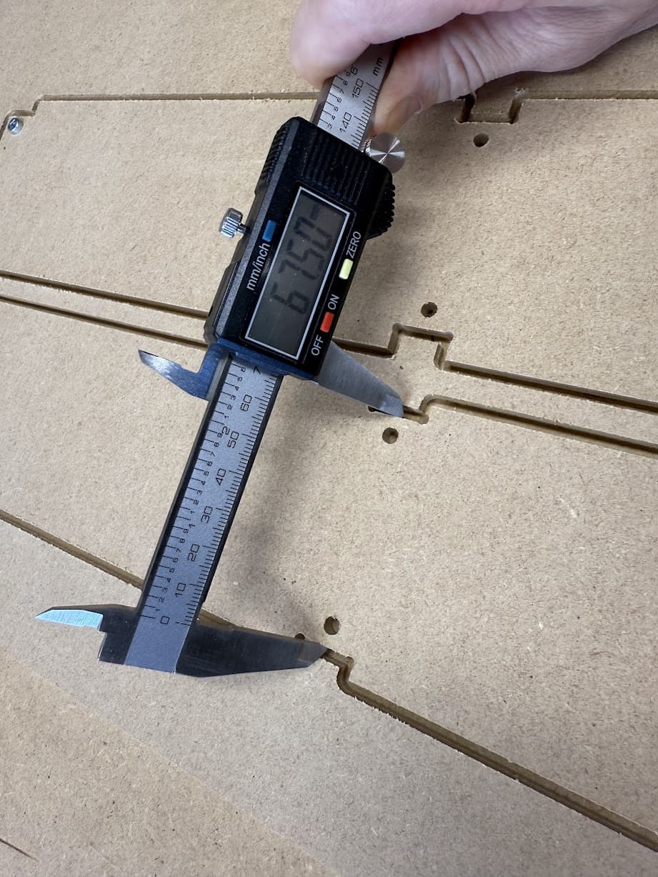 My first cuts, using 3.18mm made tabs too big, and holes too small.