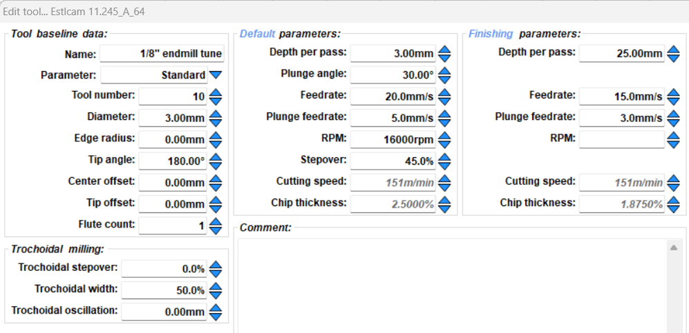I’m using Ryan’s 1/8" endmill and have it as 3.18mm