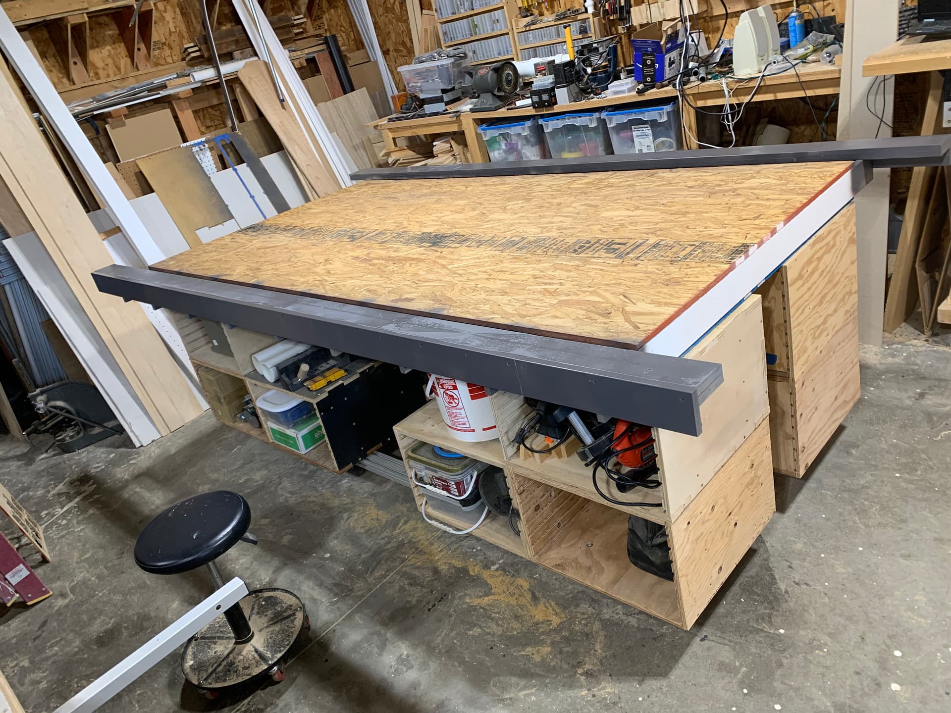 What it is sitting on in that last photo is going to be the base of the table. I have been using the LR3 to cut some cabinets and they are setup on a metal frame with wheels. I have 4 more cabinets to get done to fill the last spaces on either side of the table. With those done I will be able to have support on the main ‘bessel’ points of the table. I should be able to move it around my shop as well if needed, hopefully. Might have put too small of weight capacity wheels on it, but will see how it works out.