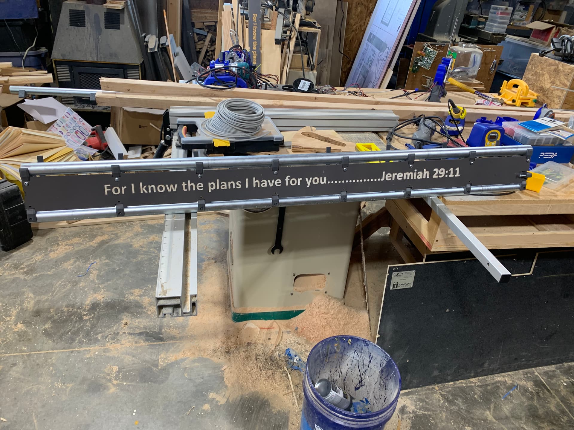 Have started the side rails for the machine to ride on, but they are just loose still so far. I couldn’t get 10’ MDF strips, so we are doing a scarf joint across two of the braces to extend two pieces the needed length.