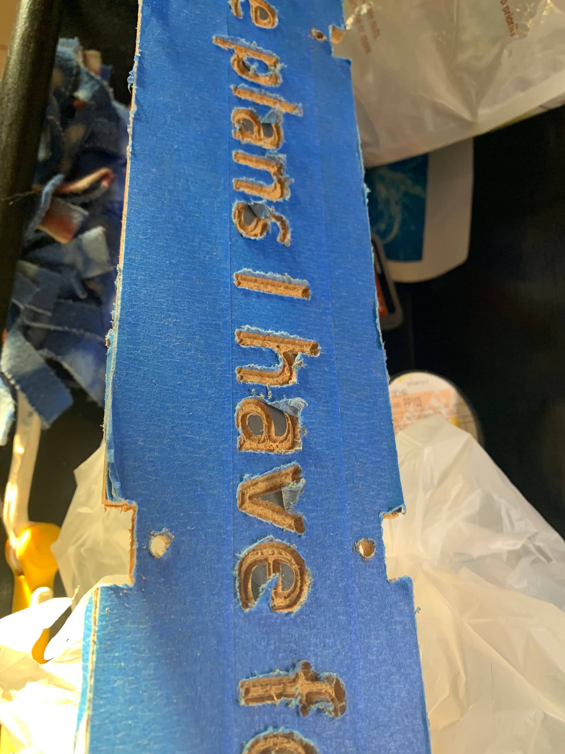 I was hoping to get fancy here and painted the base color before I did the cuts for the lettering. I then covered it in tape thinking that it would just cut the tape away and I could then spray paint the lettering. That didn’t work as well as I was hoping it would. The tape tore and got pulled up all over the place.