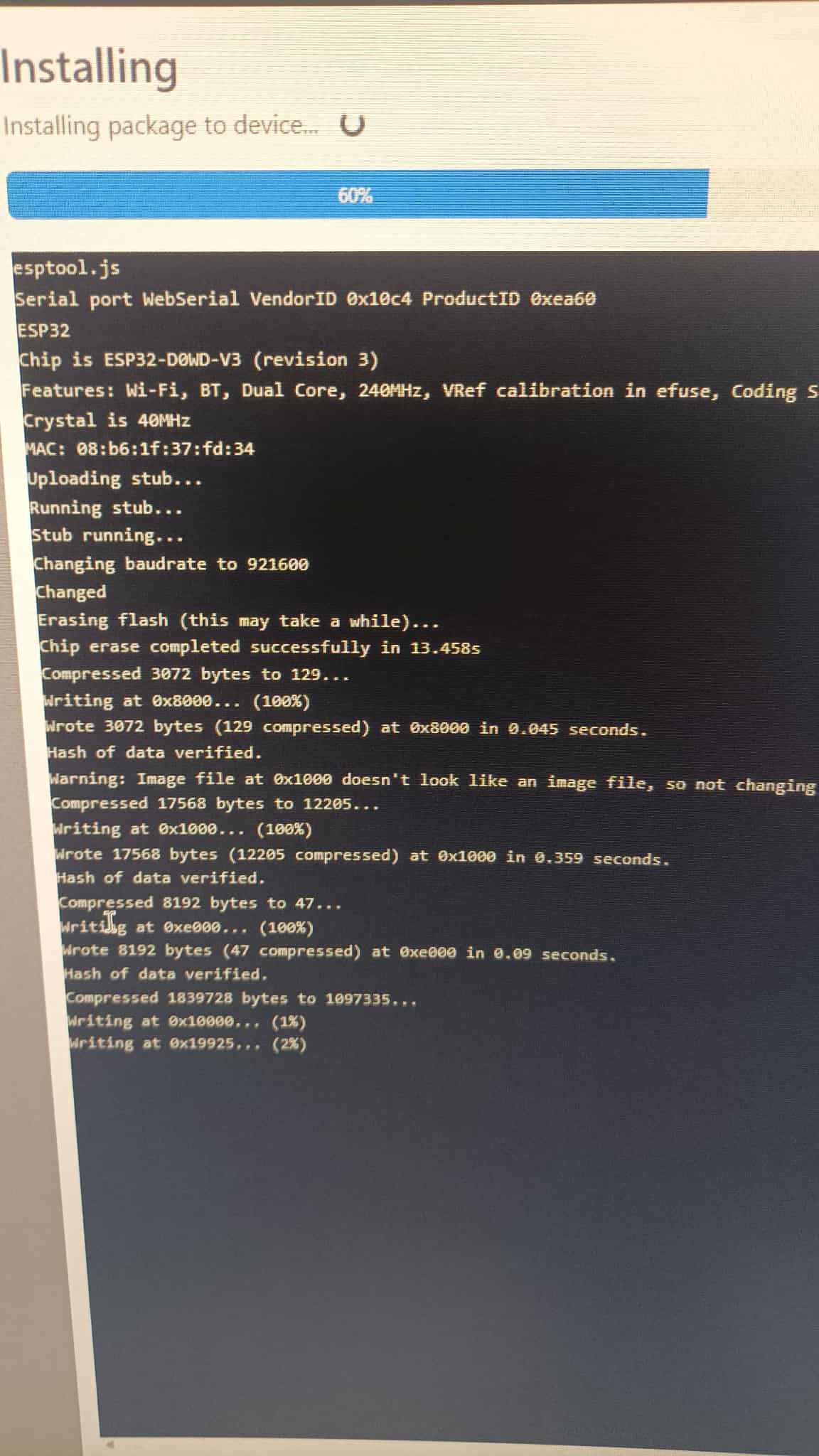 First, I had to put in the new ESP32 - the first one I bought was completely the wrong one (30pin instead of 38pin). I couldn’t find an Expressif branded one, but managed to find one that said ESP32-WROOM-32 on it at least, so was crossing my fingers it would work.