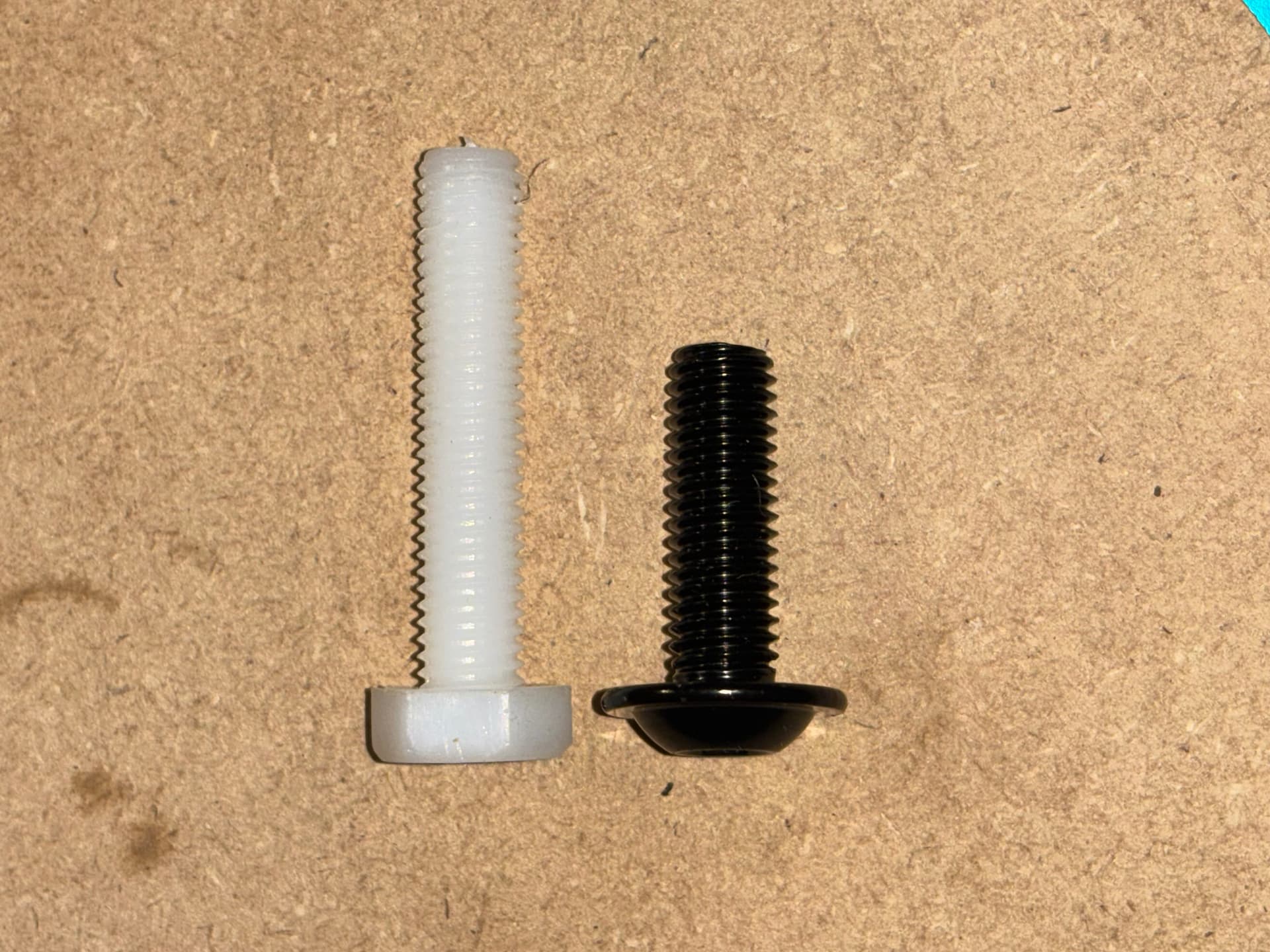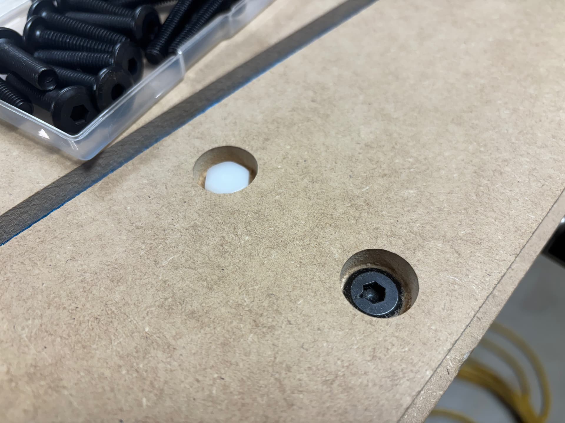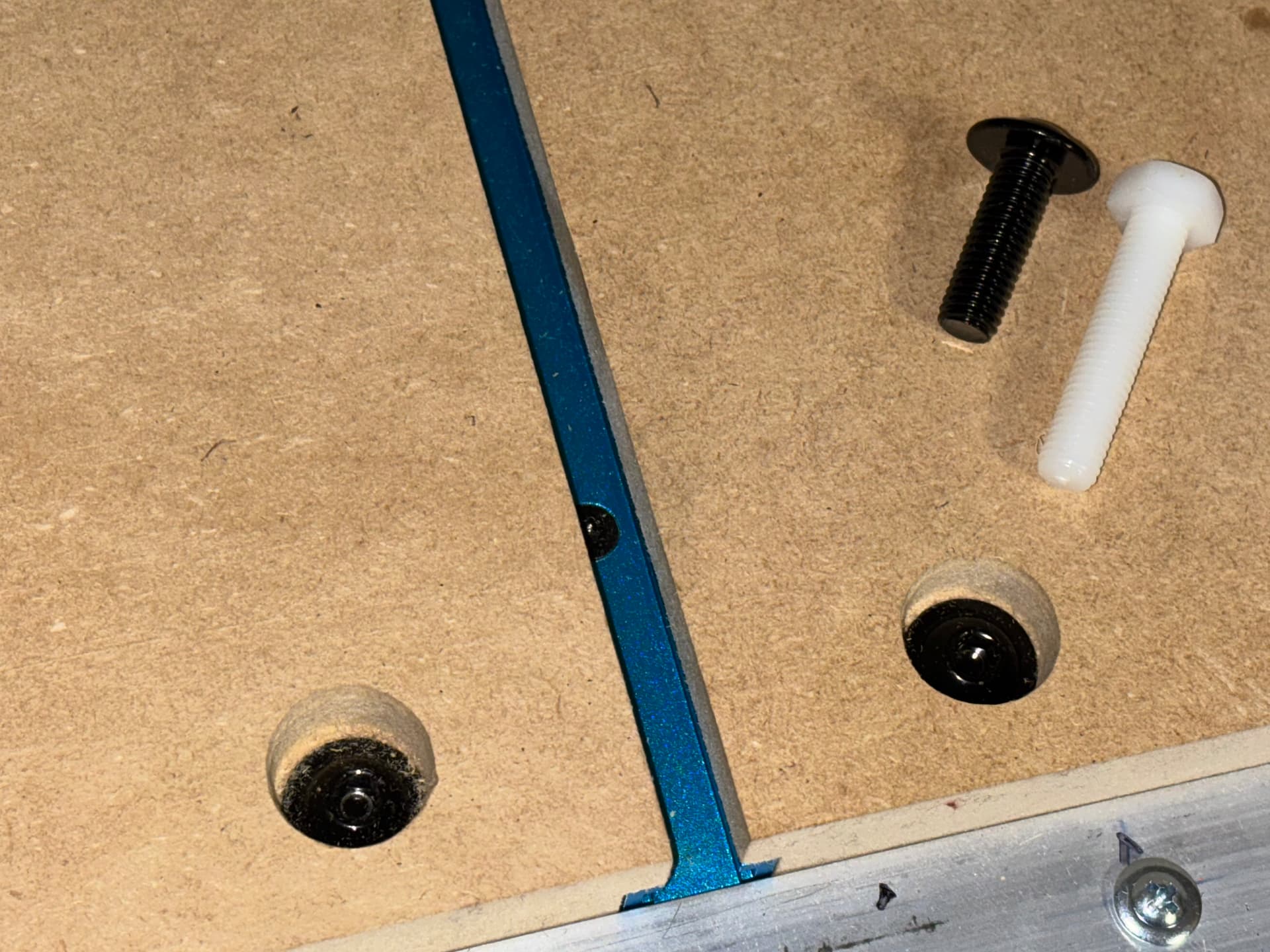 this could have been avoided had I known what to plan for sooner. Initially making the pocket holes large enough for the socket driver to install the nylon bolts at 3/4” to a size more conducive to the flat head bolts would have eliminated the need to use the flange bolts. ![]()