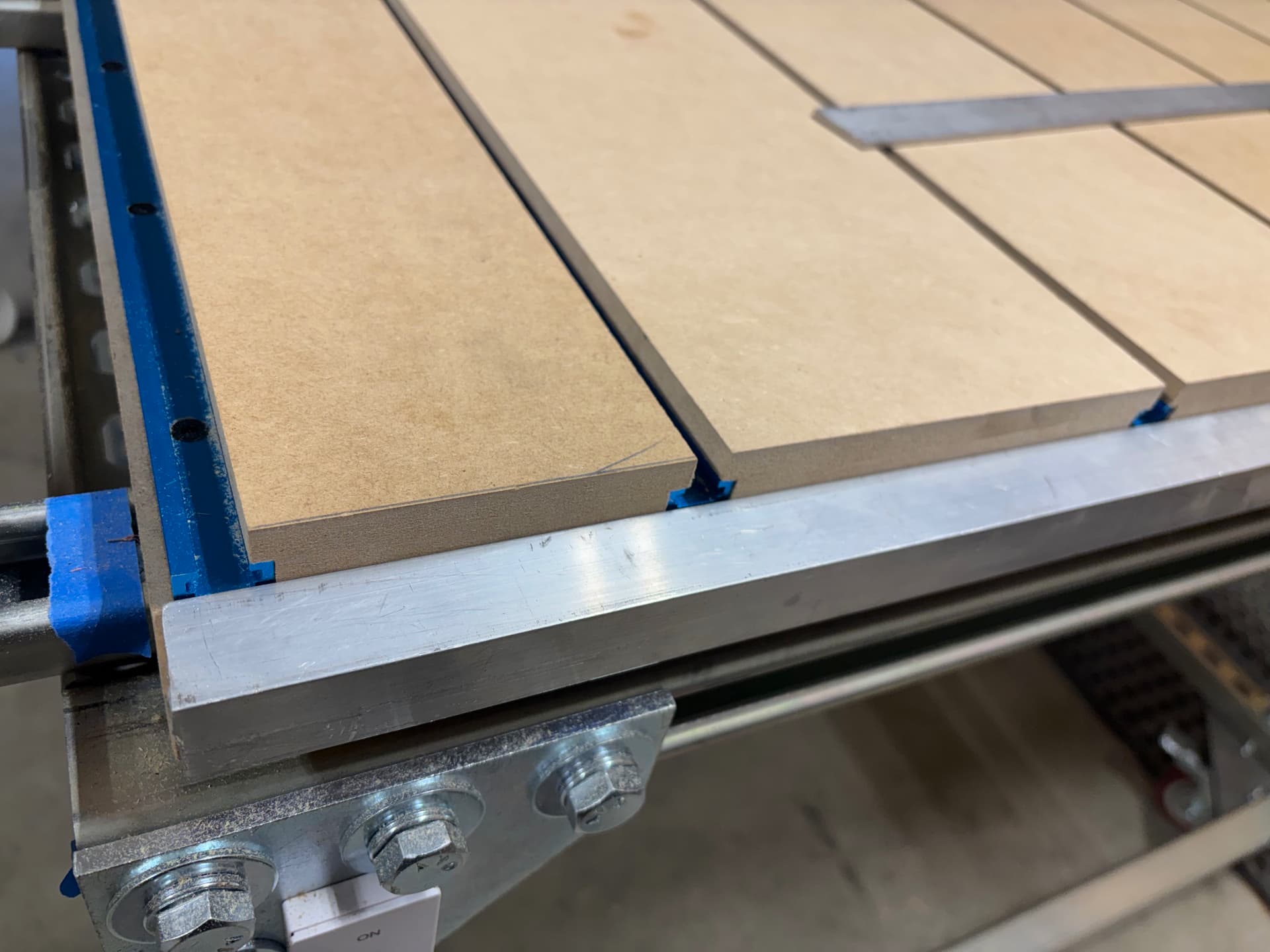 I also modified the 12g to 16g 90* bracket to be 1/2” shorter so that using the calculations from the strut panel for true 48” wide work area can be realized without going any wider with the gantry. The 49” wide MDF will now sit centered leaving 1/2” on each side of the 48” spoil board area. I did not make the change on mine as I had already squared the 48”x60” work surface to the machine… if I were do it again and use the new modified brackets, I would be able to run a t-track on both sides of the spoil board vs. just on the minimum side.