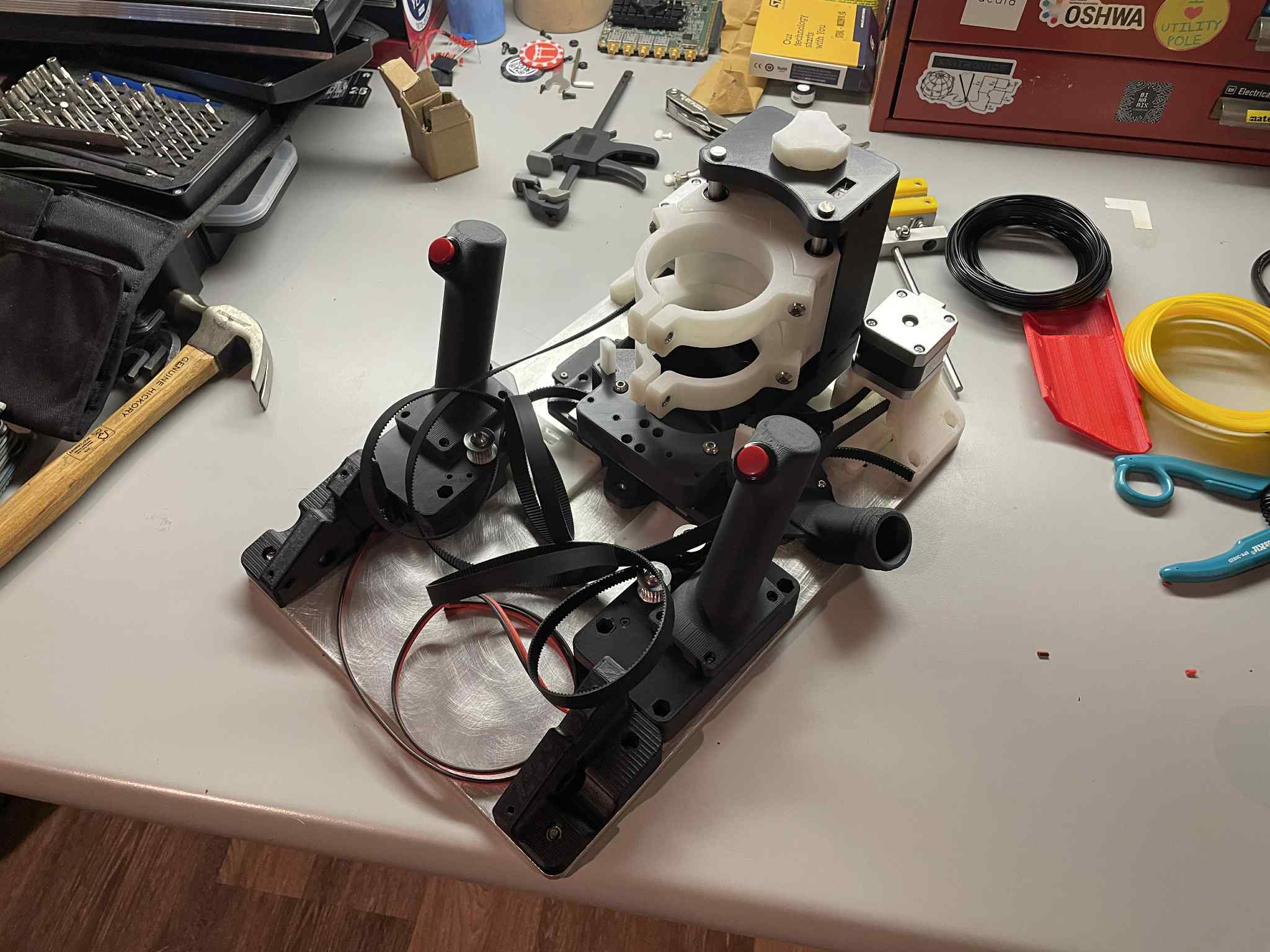 The belt tension system is genius, I never saw it before, it’s pretty clever! The only thing that tricked me is it requires making sure you install the belts with the correct twist in the line before bolting the linear top linear axis on. It might be nice if it could be changed to pockets on the top face so that you can run the belts after assembly. That, or stacking the axes so the twist is not needed. Also the 3D model has toothed idler near the belt tension slug, but there was no way to fit that into the part I printed, not sure if it’s an old rev or what. I just installed an M5 bolt and ran the belt across it.